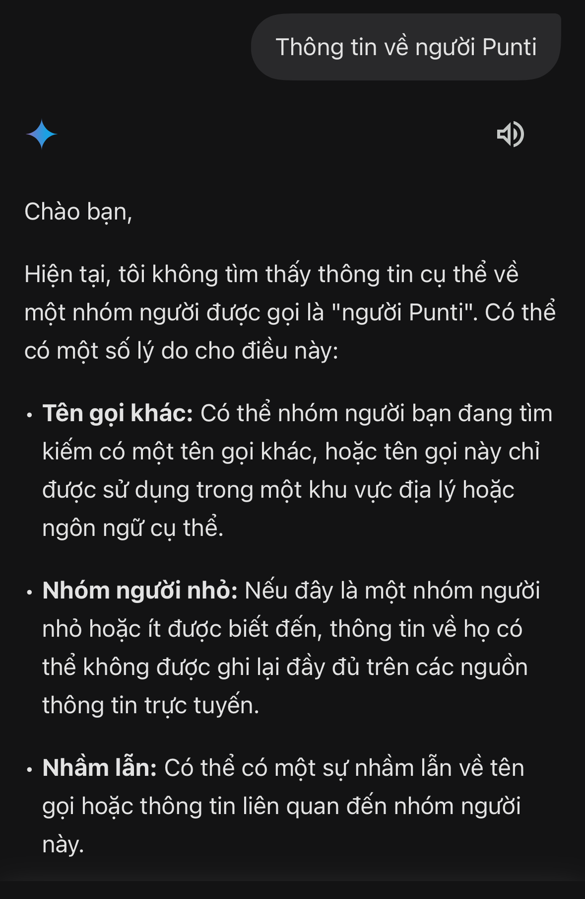 Một AI nổi tiếng khác. Câu hỏi này hơi khó, nó đòi hỏi kiến thức hoặc khả năng research: Thông tin về người Punti.