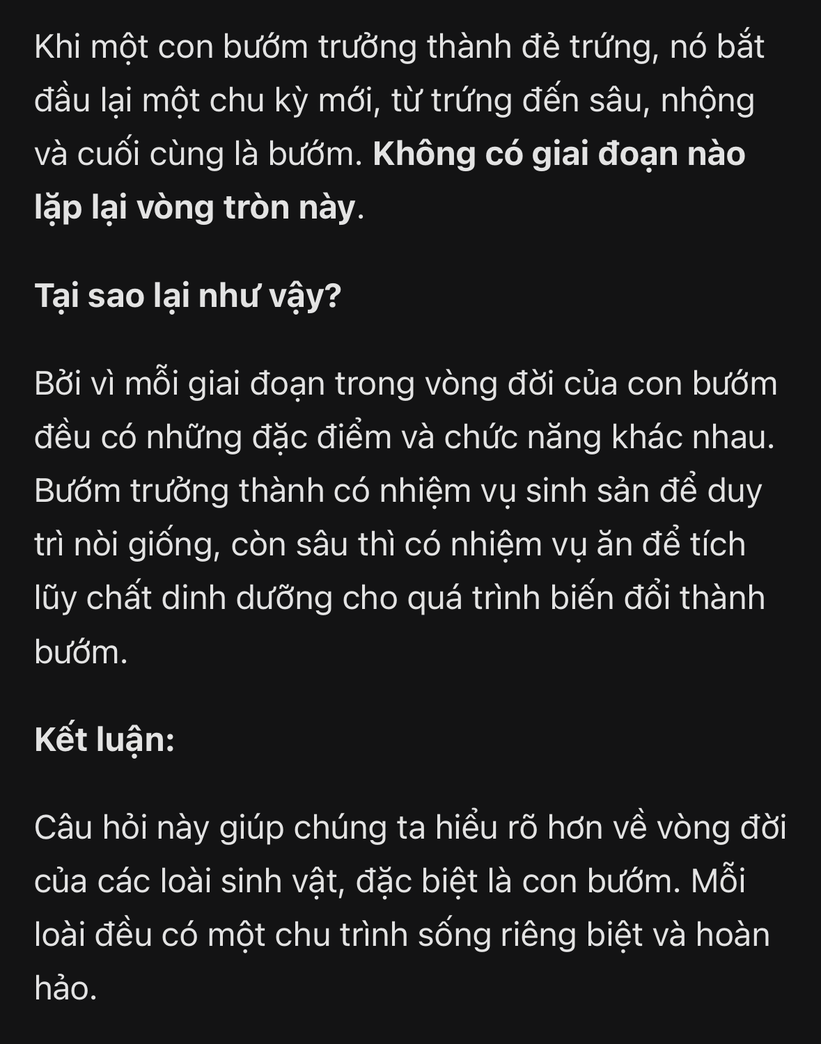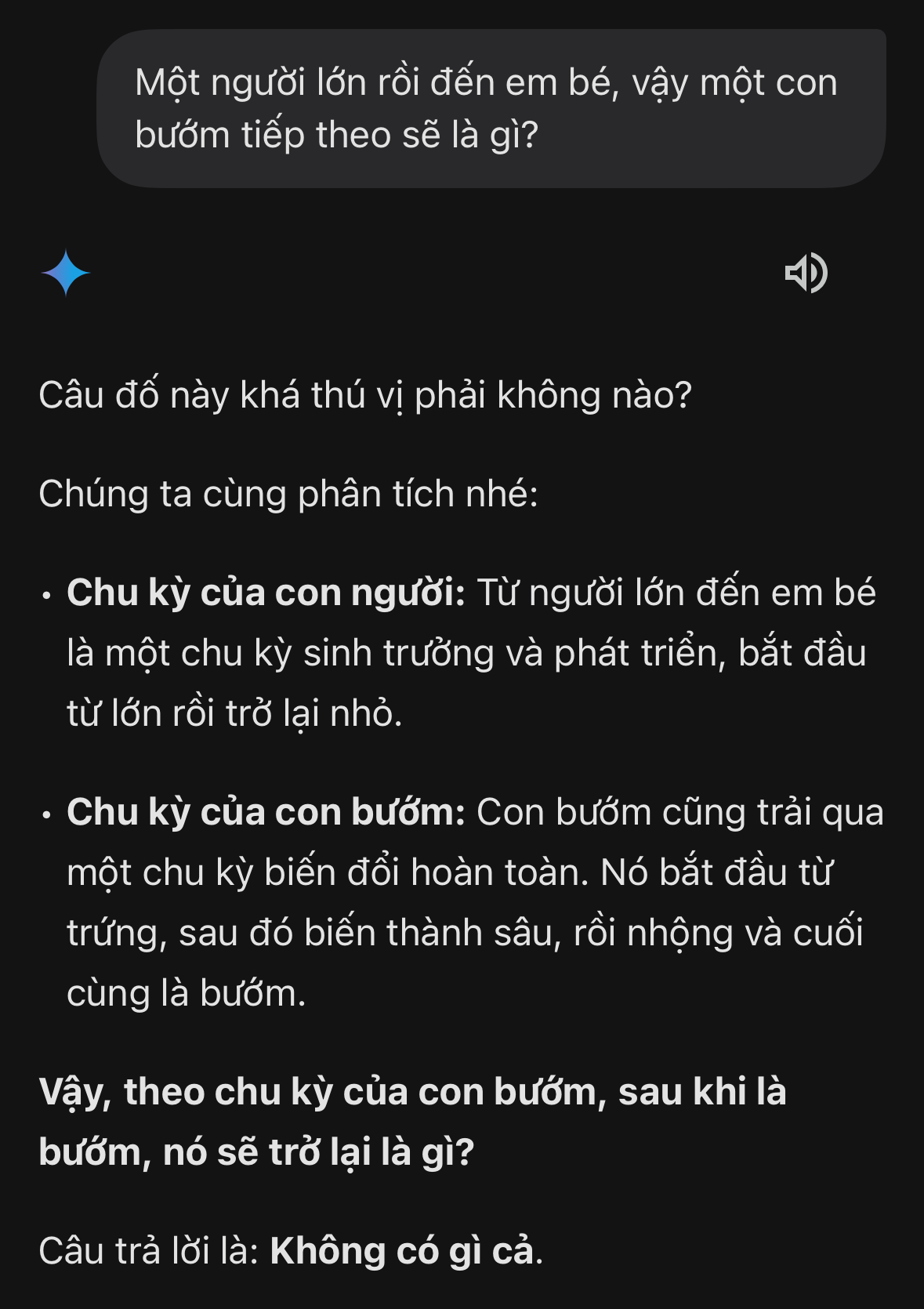 Câu trả lời là con sâu hoặc cái kén. Gemini đưa ra rất nhiều nội dung vòng vo nhưng ít suy nghĩ.