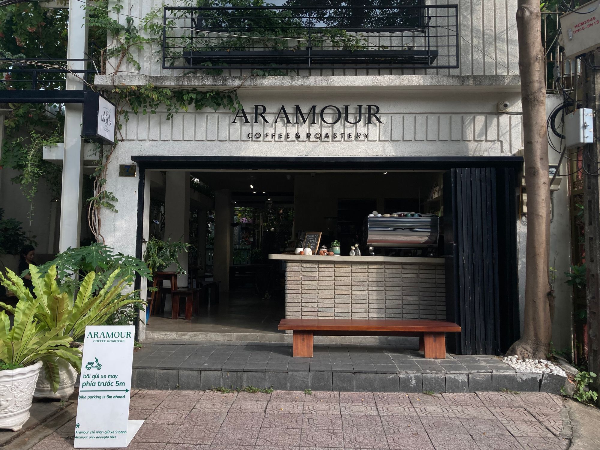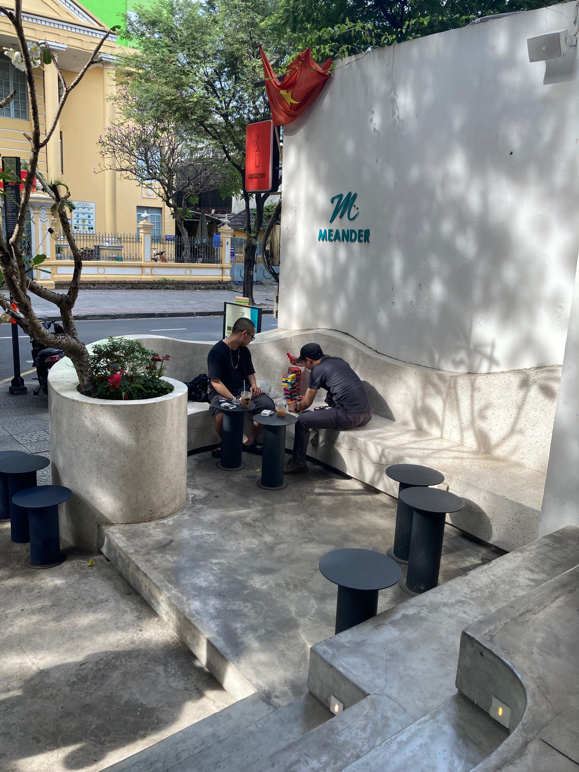 Băng ghế dài trong ánh nắng ban mai này thật thích hợp để chill và nhìn đường phố cho đến tận trưa