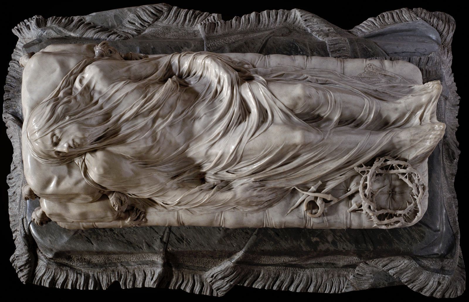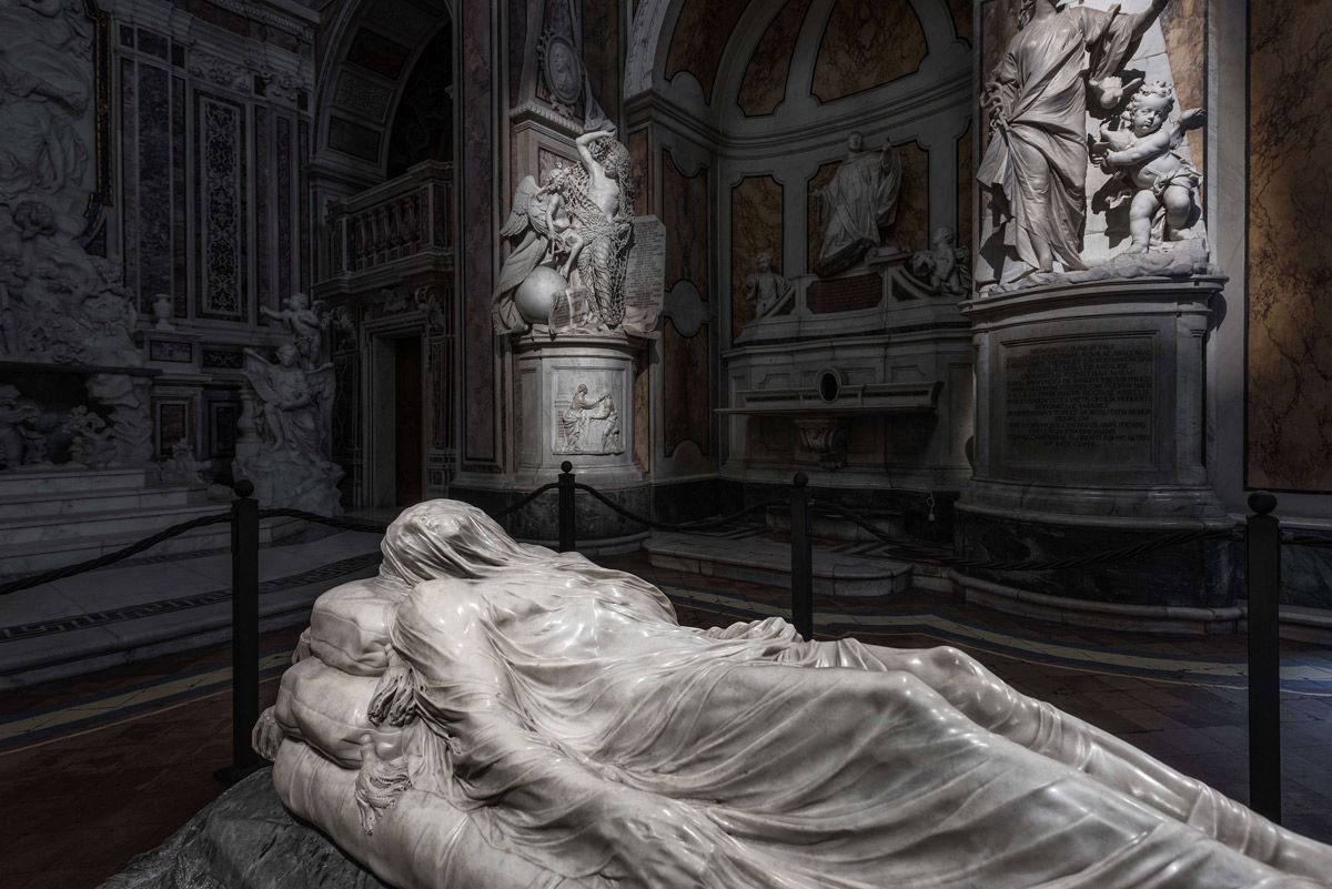 Hoàng tử thứ bảy của thành San Severo là Raimondo di Sangro, muốn có một tác phẩm miêu tả Chúa khi vừa qua đời, phủ trên là lớp vải trong suốt tạc từ cùng một khối đá, miêu tả sự đau đớn và bình thản của Chúa lúc mất. Đó là một yêu cầu kỳ lạ và khó khăn. Và ngày nay chúng ta có The veiled Christ.