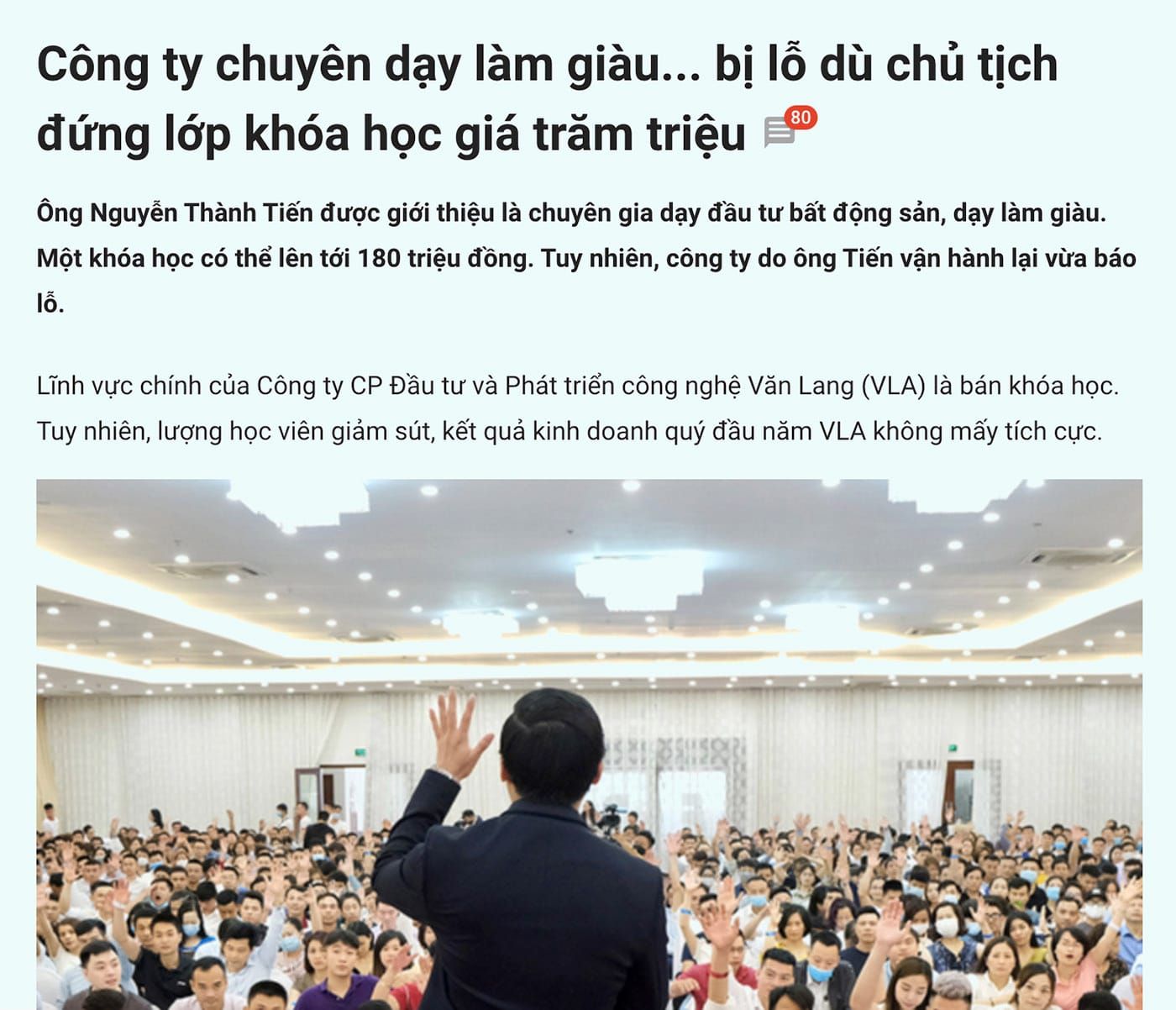 Các khoá học hiện nay rất phong phú, sau khi tham gia bạn có thể sáng tạo, chữa lành, nhiều nhất là giàu có. Các chuyên gia nói rằng họ sẽ đánh thức giấc mơ triệu đô trong lớp học triệu đồng. Tuy nhiên, chưa kịp giàu trung tâm biến mất, những bậc thầy “tôi tài giỏi bạn cũng thế" bỗng nhiên… ăn cơm nhà nước. Tại sao chúng ta không nhận ra mọi thứ trước khi chúng xảy ra?