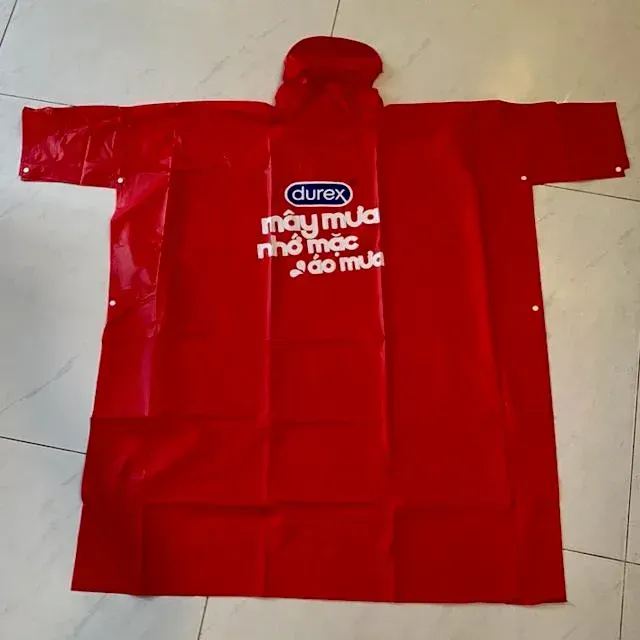- 4. Ngày nay, phần lớn áo mưa có tác dụng phụ được tận dụng hơn cả: Quảng cáo. Và cho dù chỉ có tác dụng phụ, nhưng nhiều thương hiệu được in trên nó làm người mặc khó xử hơn cả cơn mưa bên ngoài.