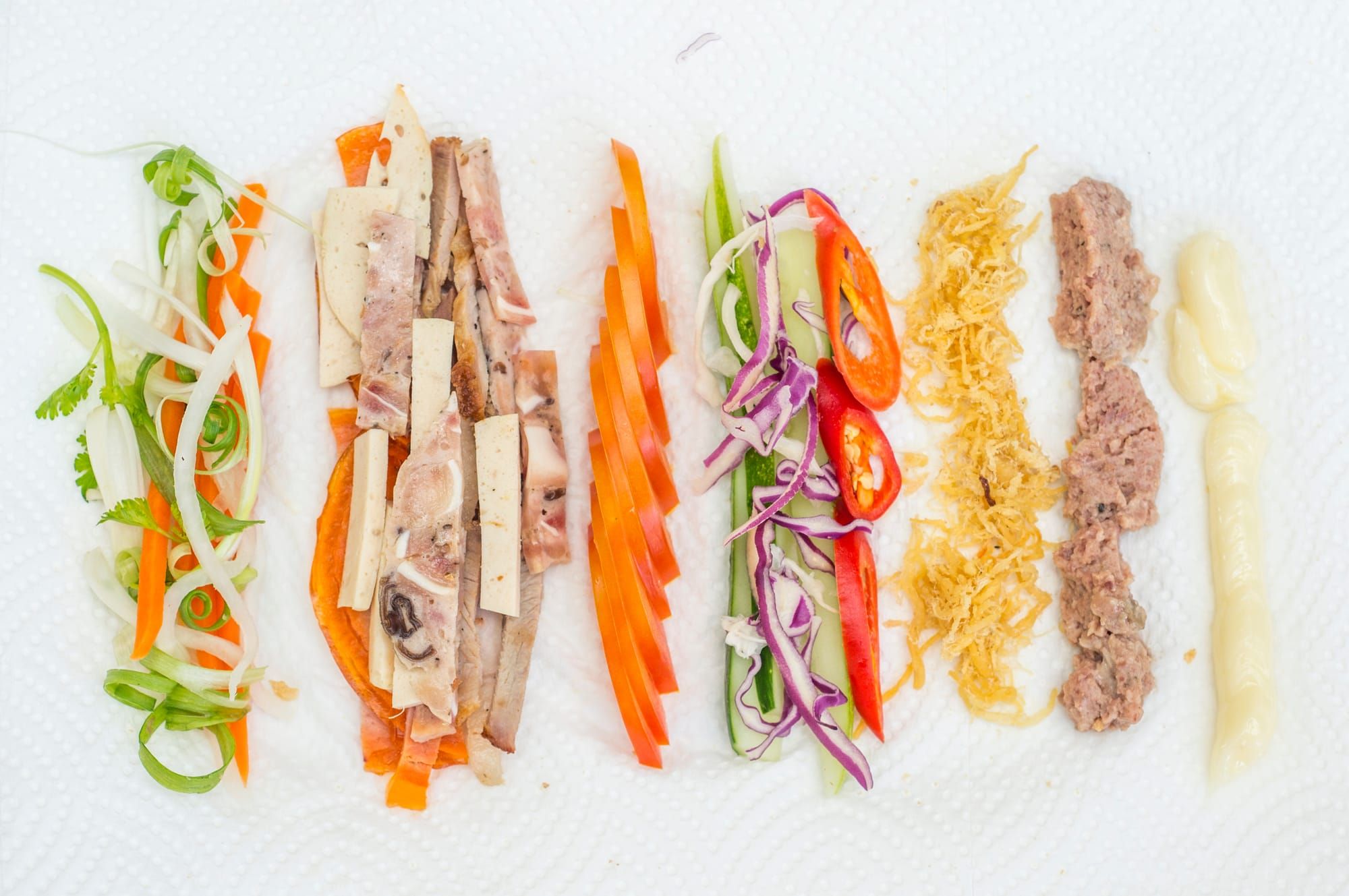 Ngoài ra, những nghệ nhân bánh mì thực thụ cho dù bận rộn bấn loạn cách mấy cũng luôn sắp xếp các thành phần chỉn chu đều khắp chiều dài bánh. Số lượng thịt nạc và mỡ không bao giờ dư thừa ở bất kỳ đoạn nhỏ nào. Chuyện này cũng nên quan tâm bởi đôi khi bạn sẽ gặp vài người bán bánh mì đơn giản theo nghĩa đen là cầm từng miếng chả chọi thẳng vào ổ bánh đang dang ra hốt hoảng.