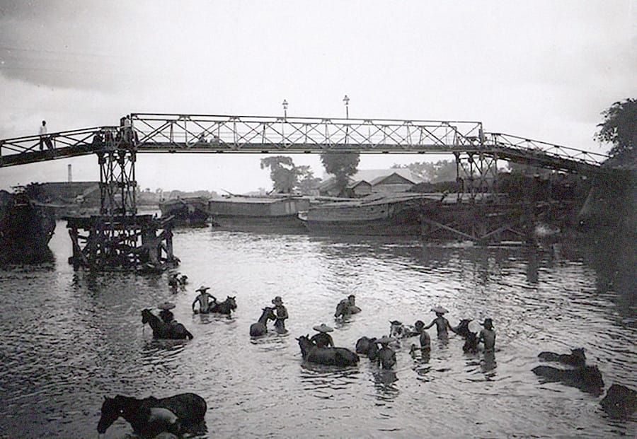 Tắm ngựa dưới chân cầu Xóm Chỉ