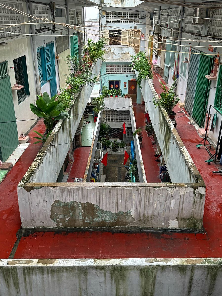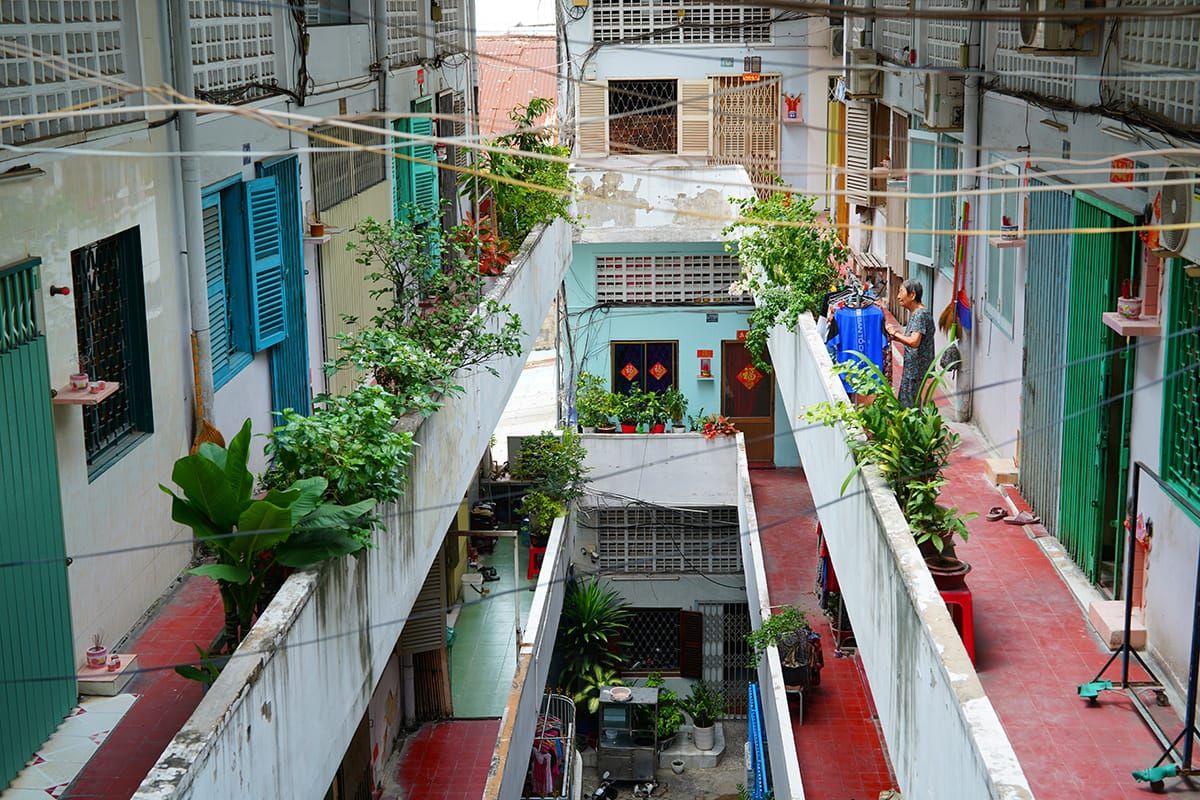 Những dãy hành lang chạy thành vòng tròn này kết nối nhà với nhà, người với người. Ở đây, bạn thường bắt gặp một người lớn tuổi đi chợ về và ghé ngang tất cả những cánh cửa đang mở chỉ để nói với người bên trong vài ba câu. Hoặc hai người trao đổi với nhau rôm rả qua hành lang đối diện, thậm chí giữa tầng này với tầng khác.