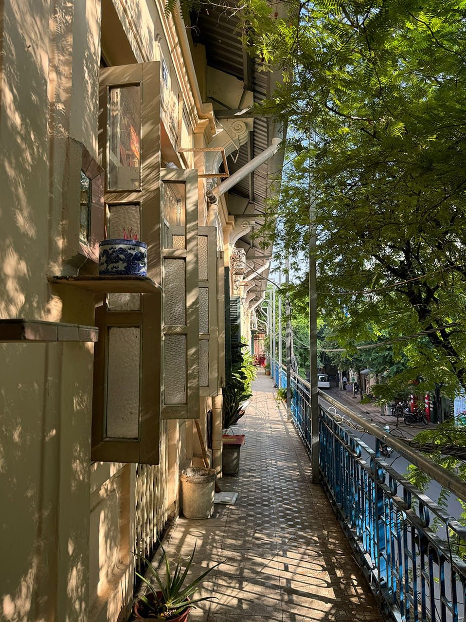 Đây là những dãy ban công theo kiểu Pháp, thông thường chỉ cho phép đặt tối đa một chiếc bàn hoặc ghế nhỏ, nhưng nổi bật với vẻ ngoài thanh lịch được trang trí bằng hoa hay hàng me xanh phía trước đường.