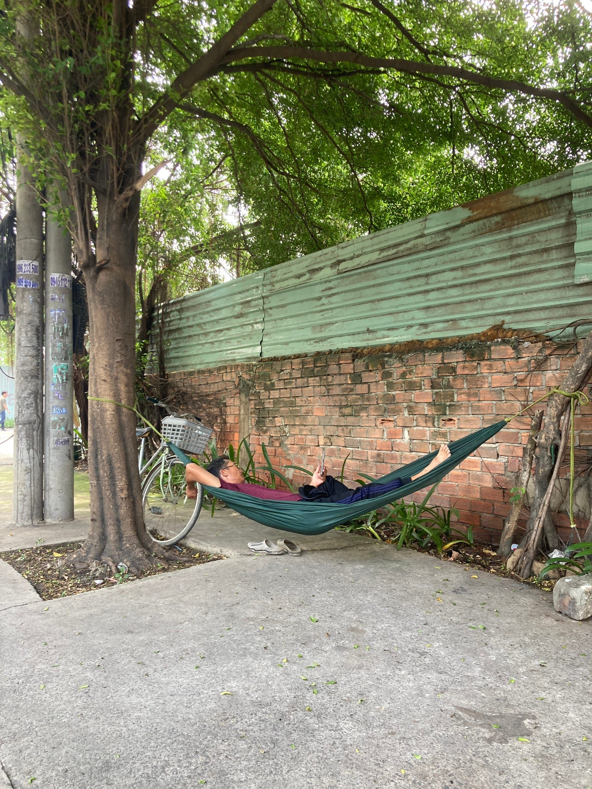 Chỉ việc mang theo võng, buộc chúng ở bất cứ nơi nào có thể để ngả lưng. Không có gì lạ khi nhìn thấy những chiếc võng được treo giữa hai cái cây hoặc cột nào đó gần vỉa hè. Cuộc sống ở Sài Gòn có lúc rất chậm rãi hoặc mọi người ở đây thực sự biết cách chill.