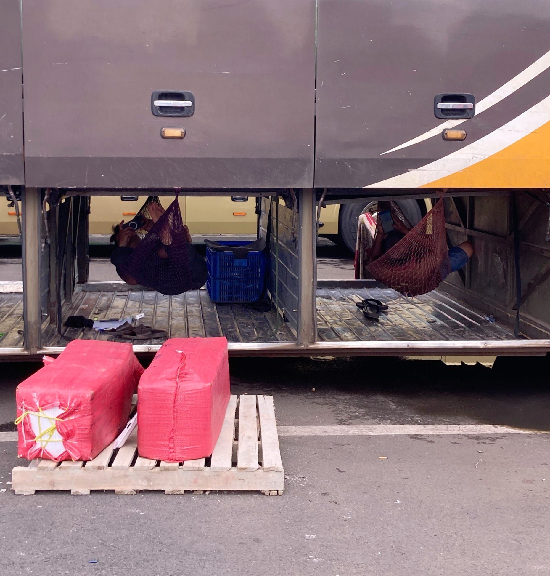 Nghĩ... đi làm mà được mang theo chiếc giường cũng tốt, ai không muốn được ngả lưng? Vậy mà anh thợ xây, tài xế, cô bán hàng... đều có chiếc giường xịn xò của mình, êm ái hơn tất cả các nhân viên văn phòng...
