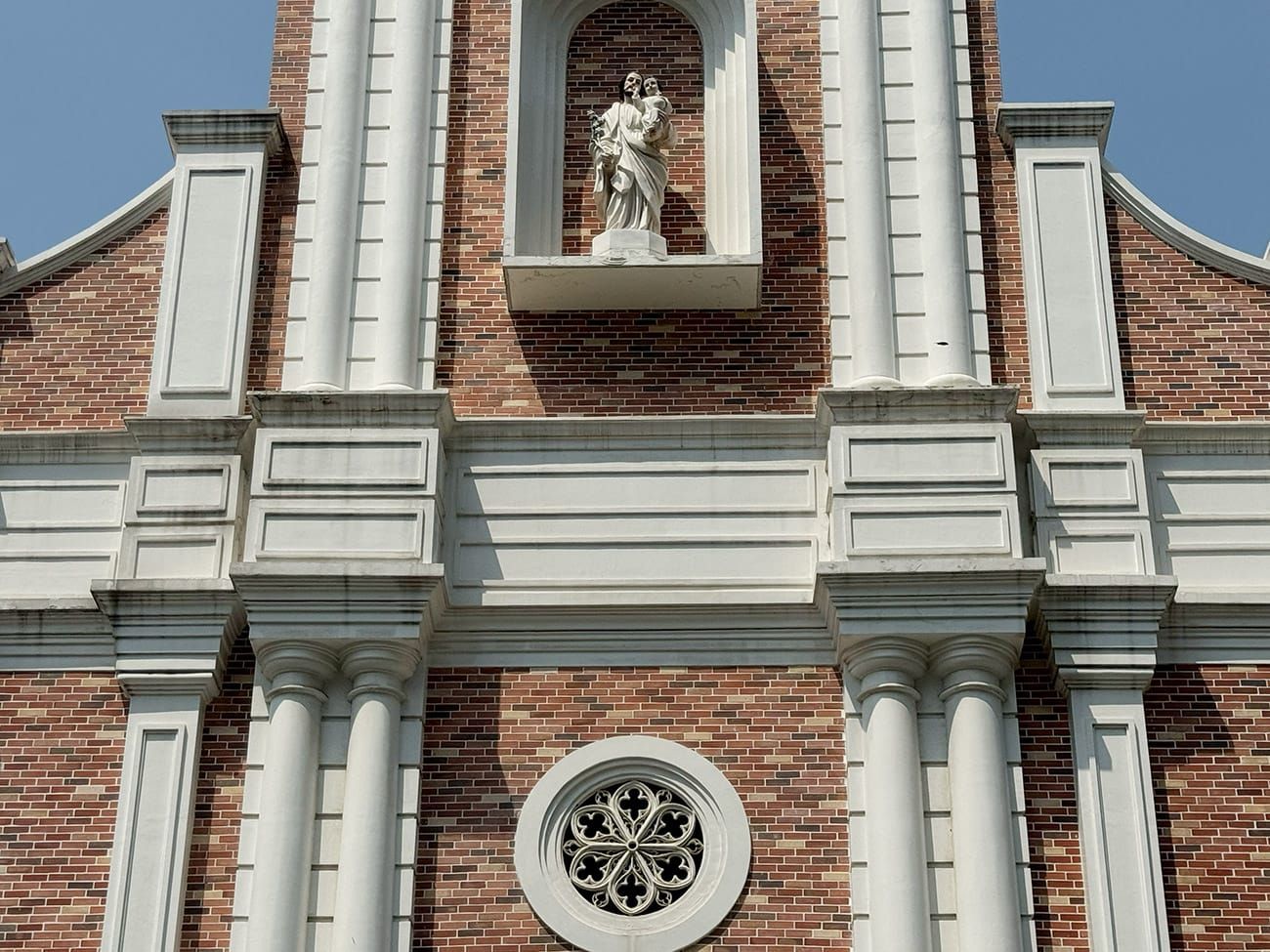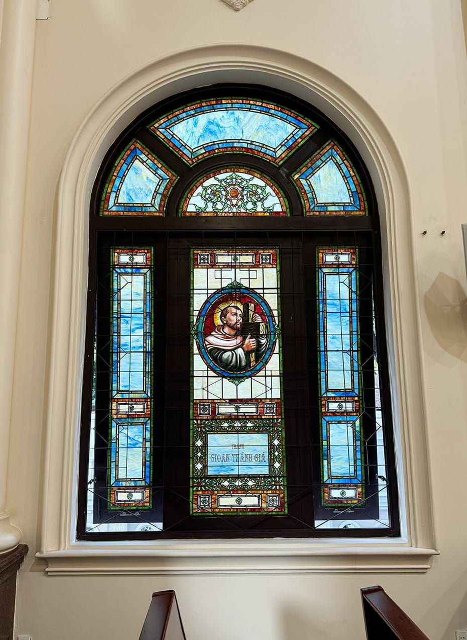 Nhà thờ lớn cổng Chu Mạnh Trinh có kiến trúc tuyệt đẹp với các cửa lớn dùng cung gãy Gothic và cung nguyên Romanesque cùng lúc. Ở giữa, các băng ngang trắng kiểu Phục Hưng chạy dọc thanh lịch, vững chãi.
