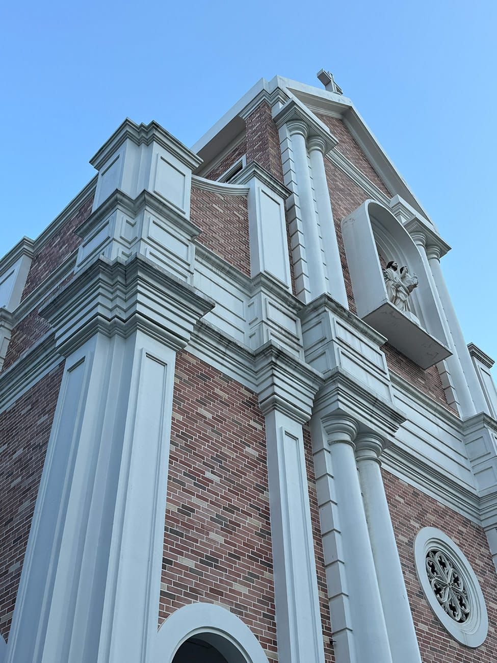 Điều đặc biệt nhất của nhà thờ này là cách dùng đá trang trí bên ngoài. Nhiều viên nhỏ với năm sắc độ khác nhau tạo nên vẻ lấp lánh dưới nắng mặt trời, sau đó lại trang nghiêm trầm mặc khi ánh sáng dịu đi.