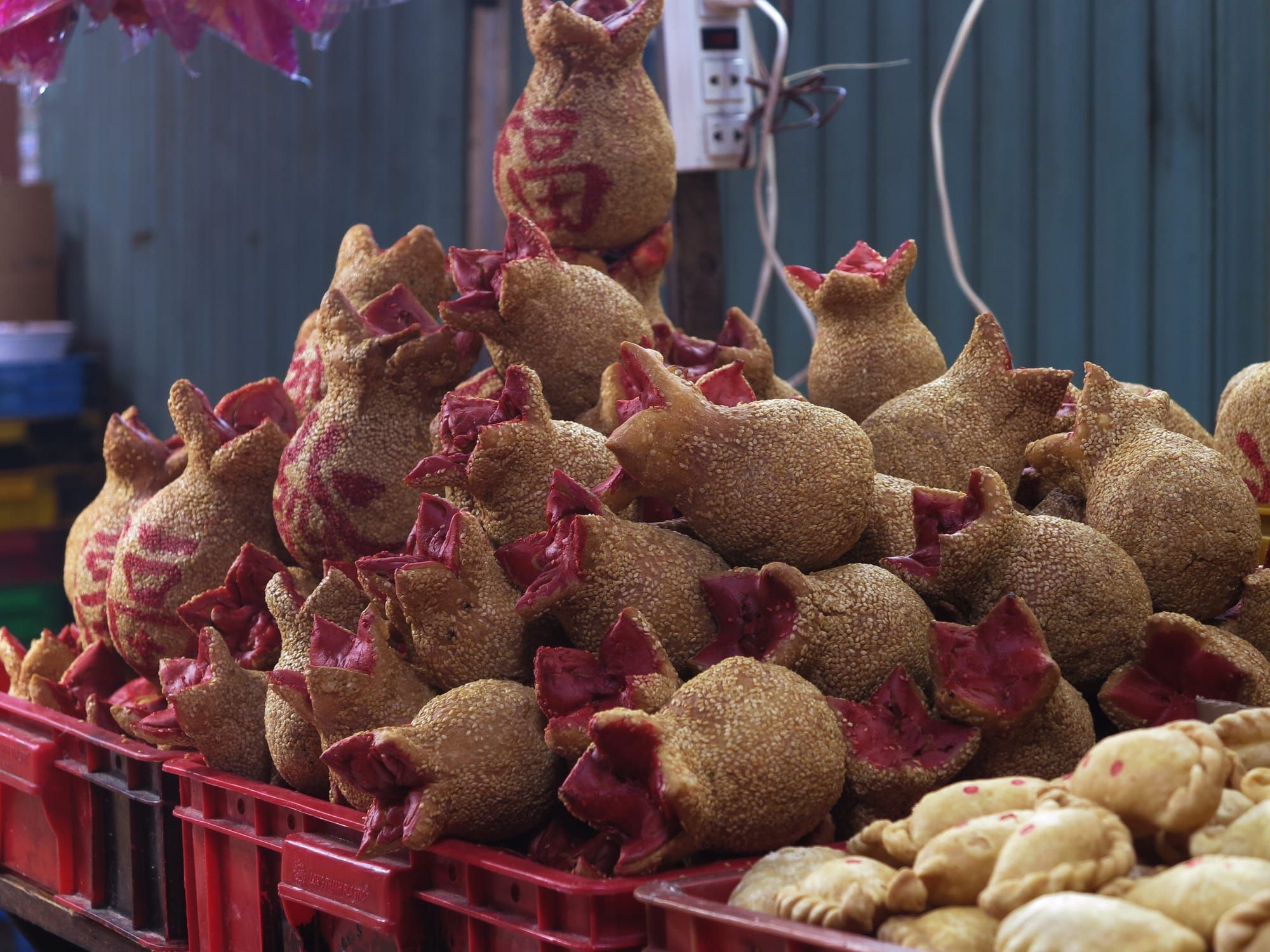 Ngoài ra bạn cũng có thể thưởng thức bánh trái lựu để cầu duyên. Thật ra bánh hơi khó ăn, giống như duyên vậy, khó cầu.