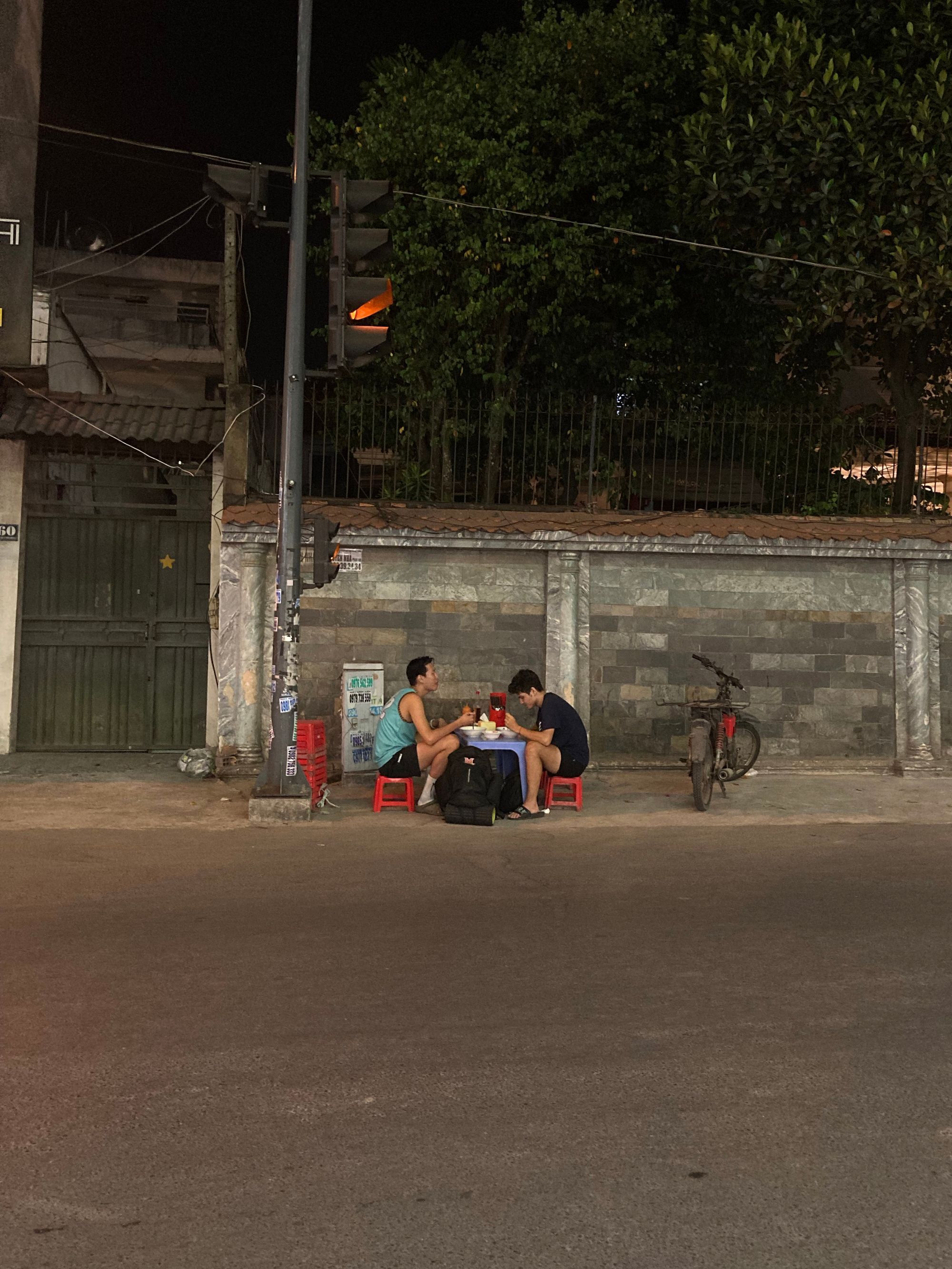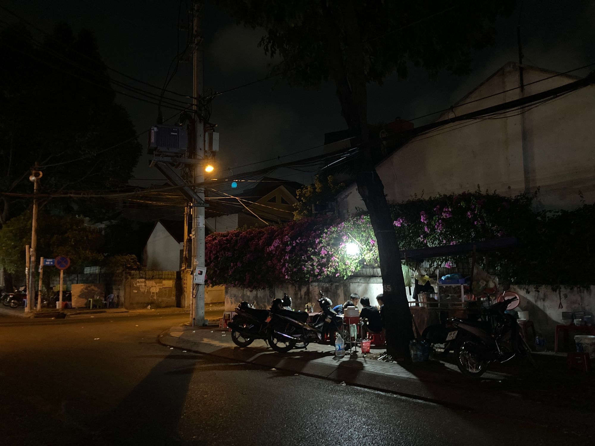 Ngay cả dưới một biệt thự sang trọng như thế này, vẫn có thể bắt gặp một xe mì.