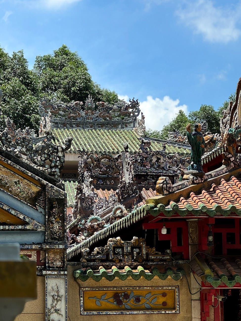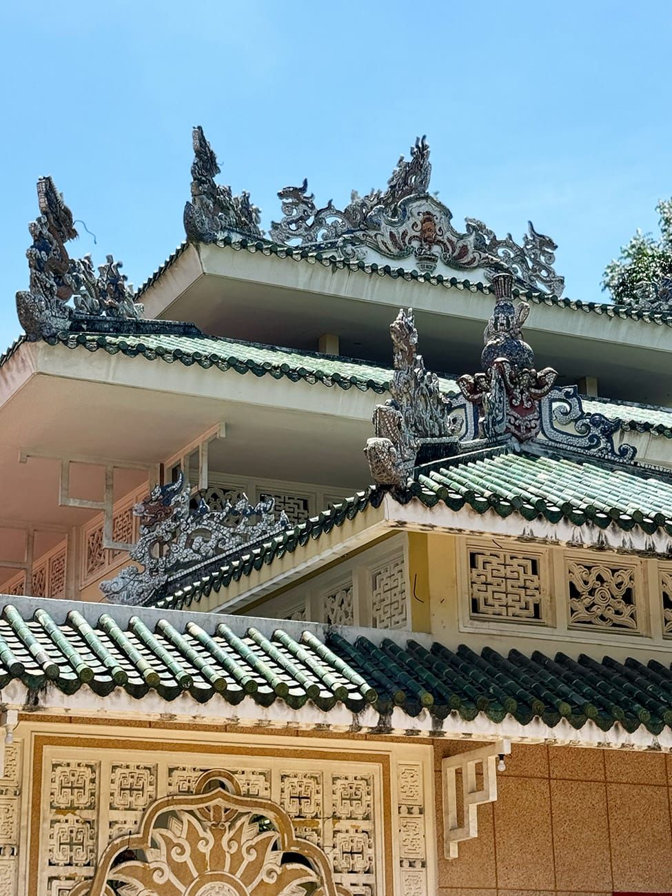 Tuy nhiên, hệ thống mái trùng điệp và kỹ thuật chạm khắc đá, sành sứ tỉ mỉ, công phu mới làm bạn ngạc nhiên nhất. Mọi chi tiết đều toát lên sự hoàn hảo, chỉn chu của nghệ thuật kiến trúc Việt Nam cổ điển. Vẻ đẹp quý phái này đến từ vô số chi tiết nhỏ xíu được đặt đúng vị trí, khéo léo trình diễn mình trong tổng thể hài hòa sinh động. Quy mô và độ bao phủ trải dài của các mảng tuyệt tác này lại là một ma thuật khác, có thể níu giữ bước chân du khách rất lâu.