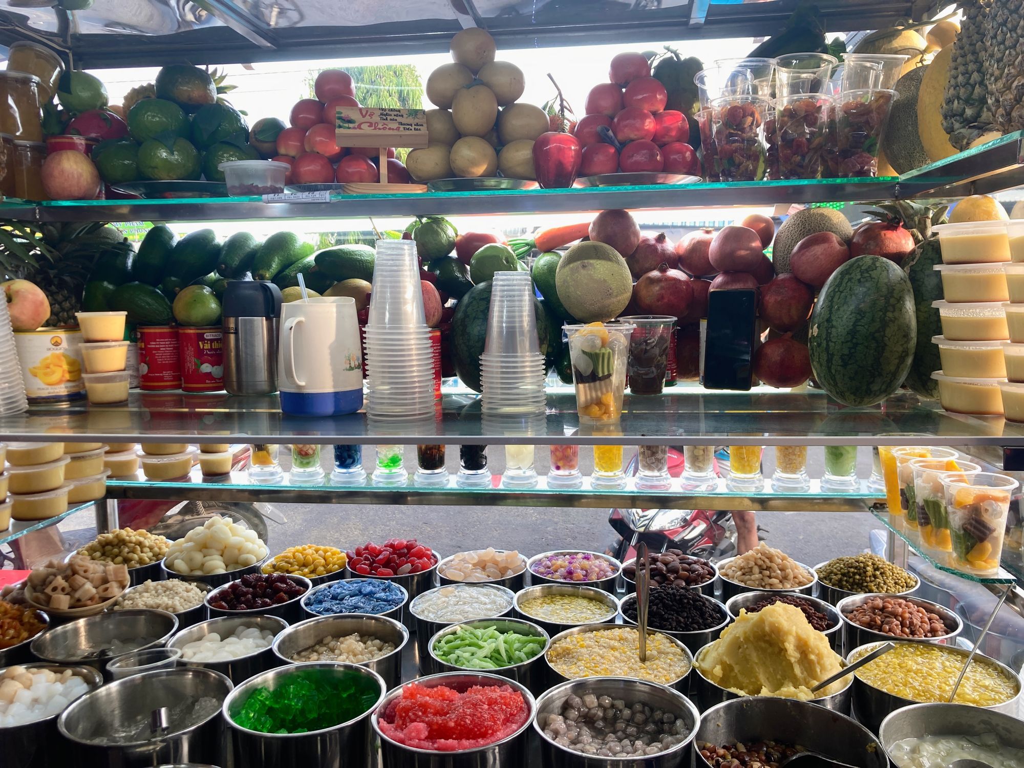 Đối với những xe hàng đông khách, ưu tiên lớn nhất trong việc bày trí vẫn là sự thuận tiện. Kiểu như món chè thập cẩm đắt khách nhất thì không thể để nguyên liệu xen lẫn món chè bưởi tiện tay được. Mọi thứ phải tuân theo logic của nó.
