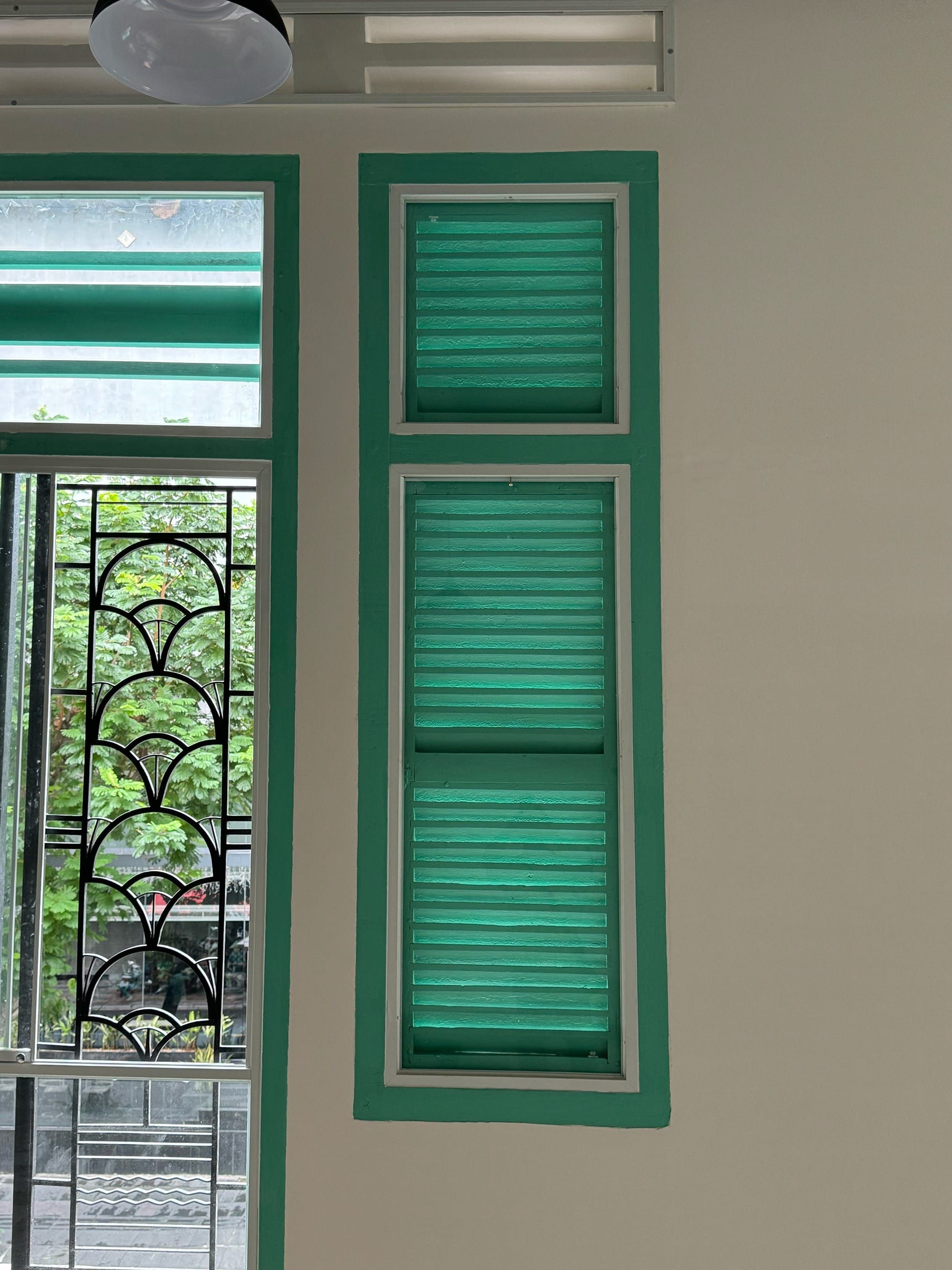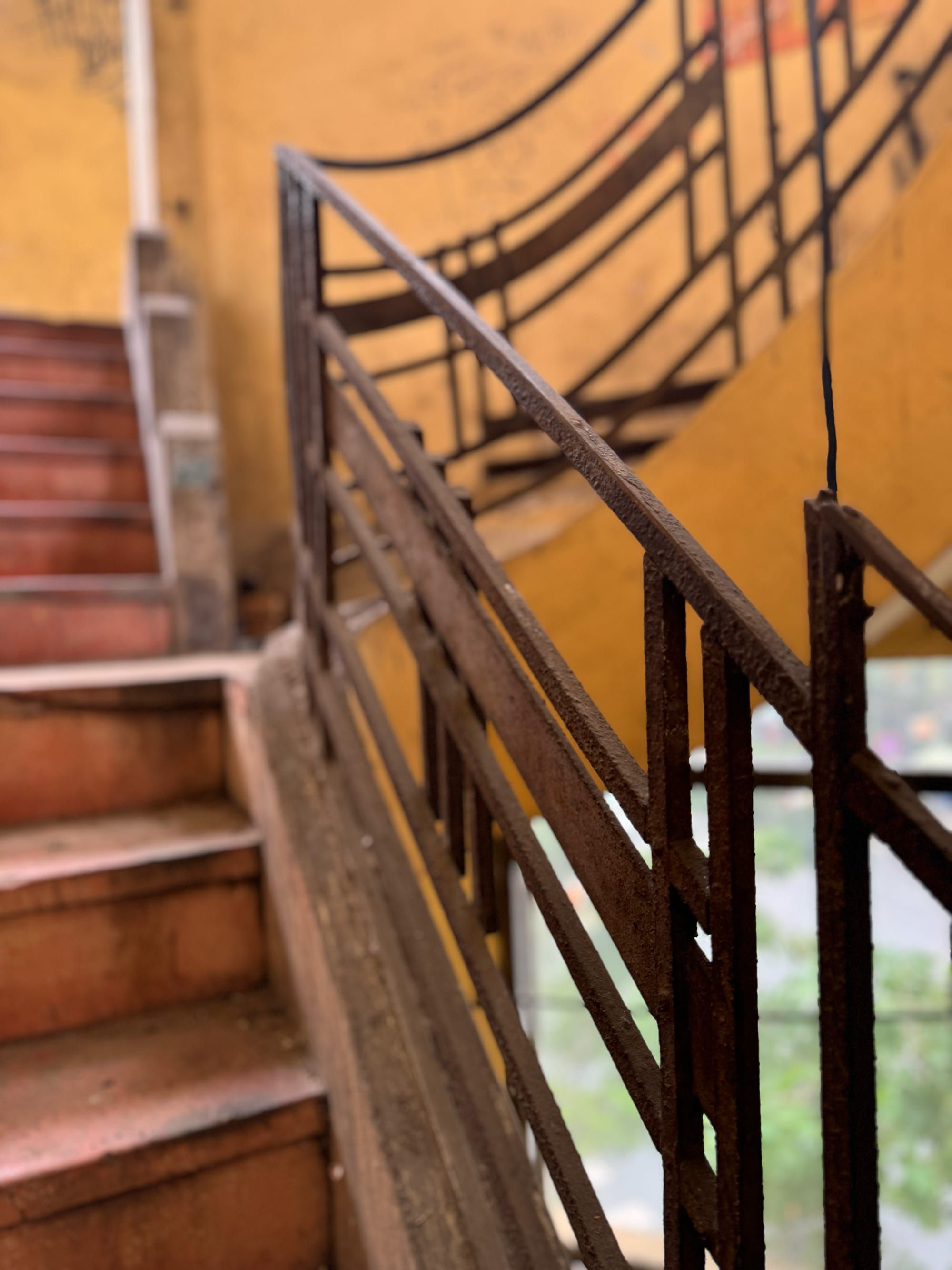Kiến trúc tòa nhà này thật đẹp, trần nhà rất cao cho phép những ô cửa lớn nhỏ trổ dài lên trên thẳng tắp.