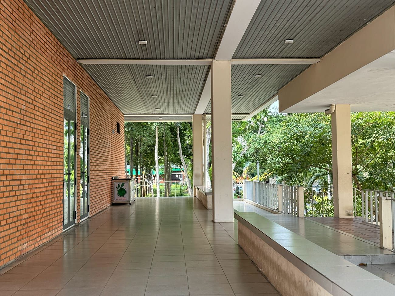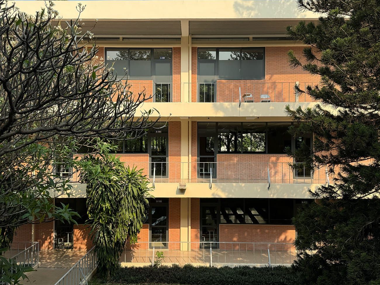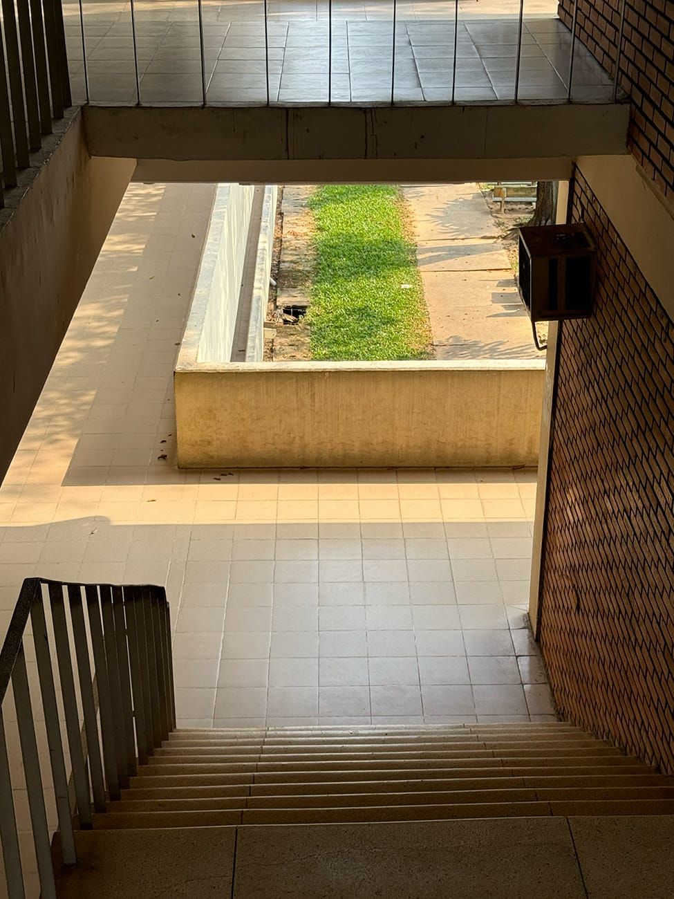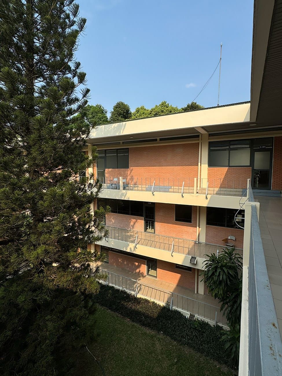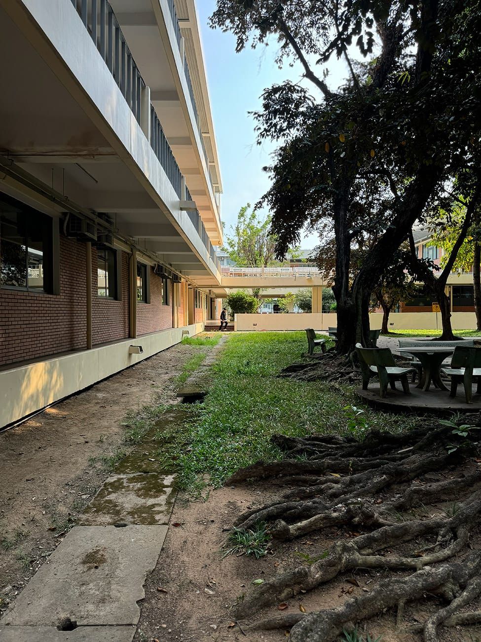 Các block giảng đường chỉ xây ba tầng, với hành lang và sân thượng sẵn sàng biến thành góc nghỉ ngơi, học tập thật yên tĩnh và riêng tư. Những cầu thang lên xuống đều crop một khoảng xanh thư thái đưa vào tầm mắt.