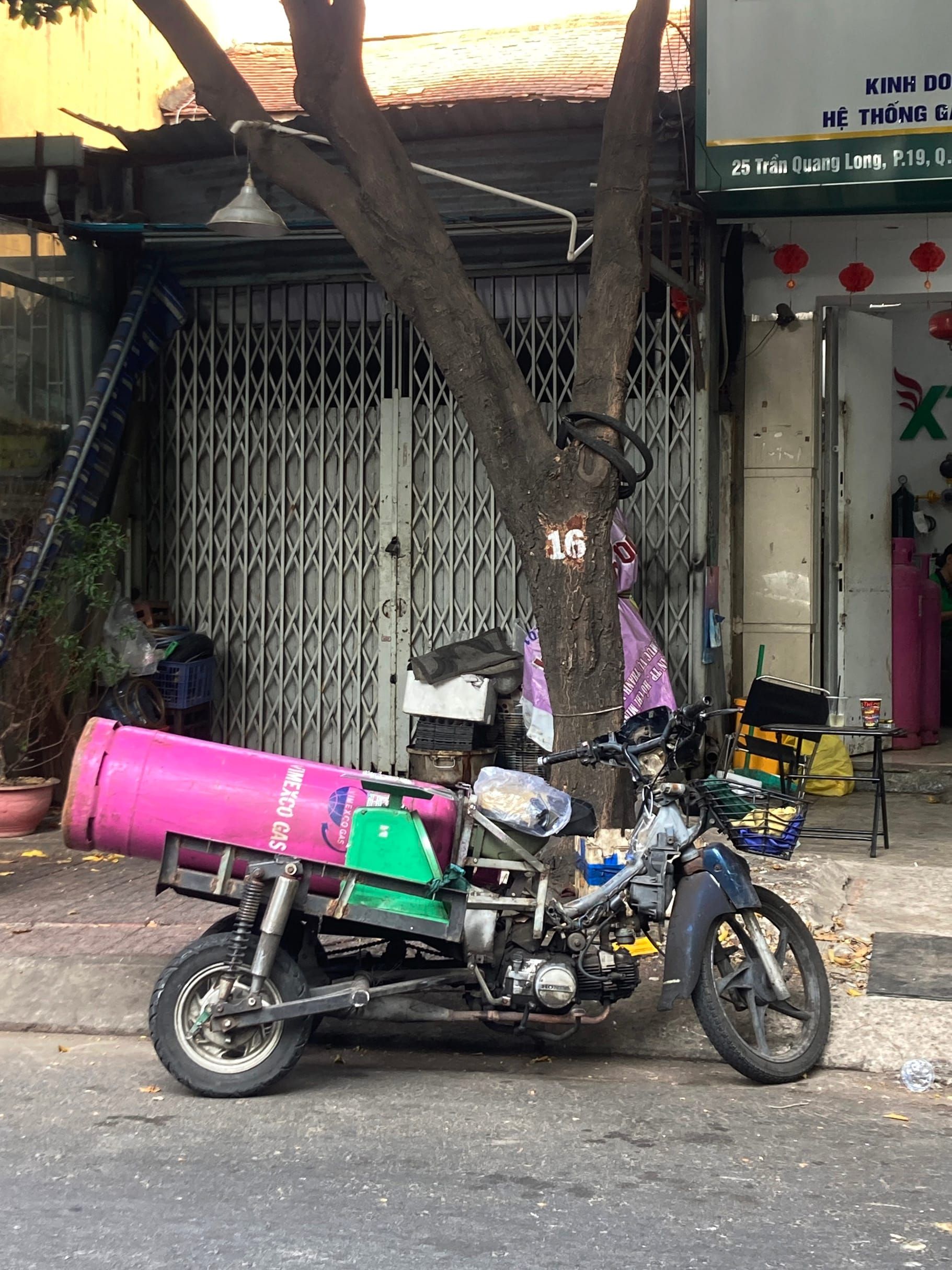 Thật khó tưởng tượng SH hay Ducati sẽ mang vác chiếc bình gas này chẳng hạn.
