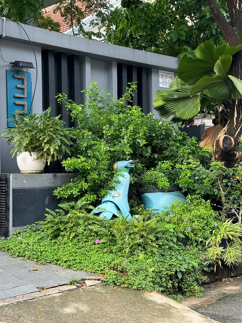 Có thể bạn rất thích những chiếc Vespa với đường nét đầy chất Ý lừng danh. Nhưng dùng hẳn một chiếc chỉ để làm tiểu cảnh như thế này quả thật là cá tính: