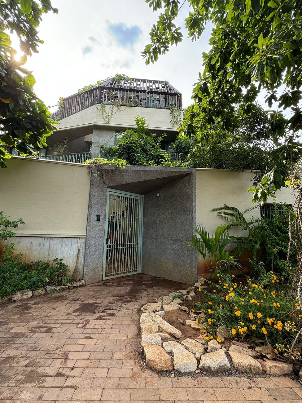 Bây giờ hãy vòng sang phía trước. Kiến trúc này hài hòa sâu với thiên nhiên xung quanh thật tự nhiên, làm bạn có cảm tưởng mình đến thăm ai đó ở vùng trung du.