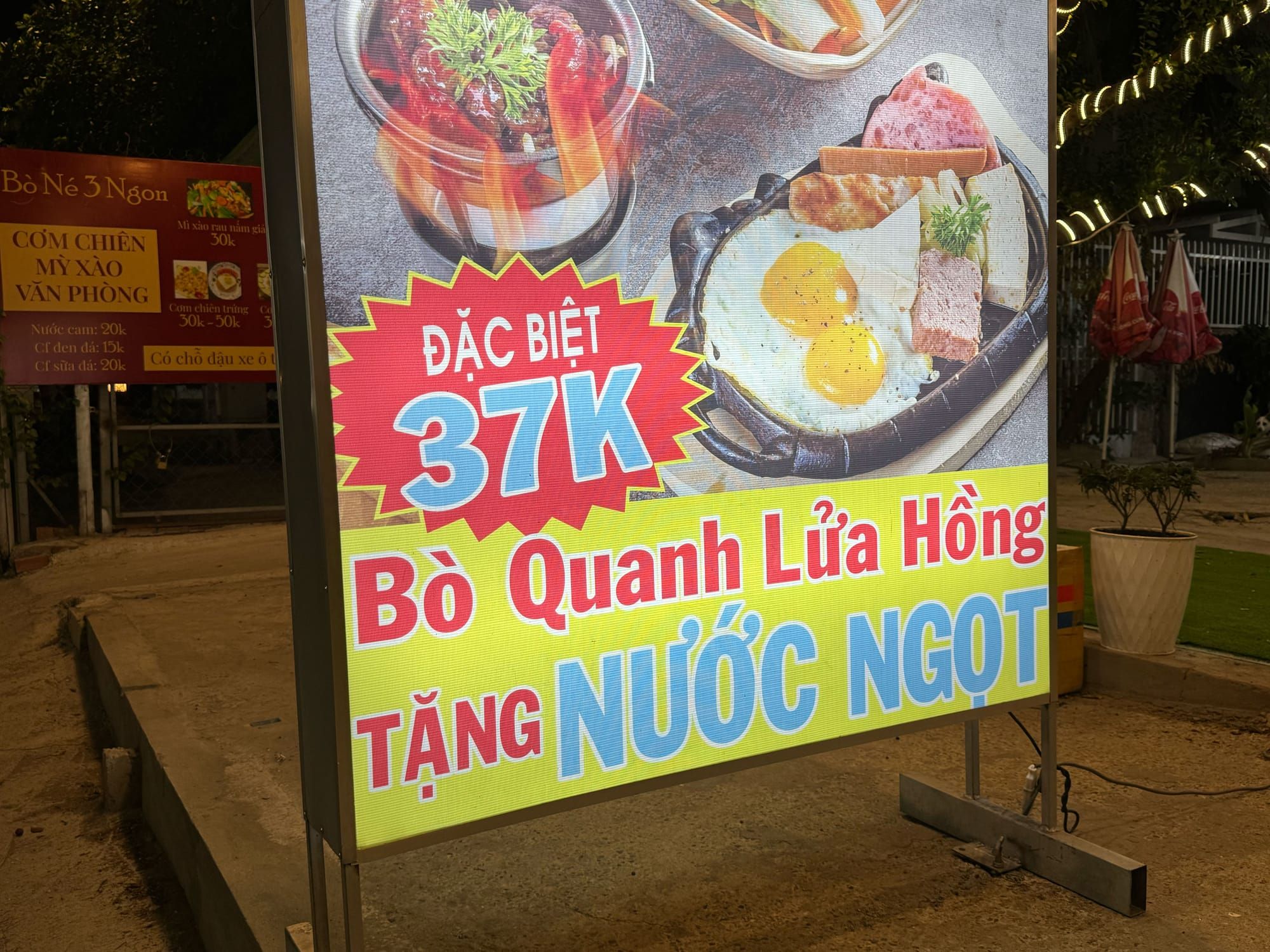 Chiếc bảng hiệu sau, "Bò" ở đây không rõ là động từ hay danh từ, là nói về sản phẩm hay khách hàng nữa:
