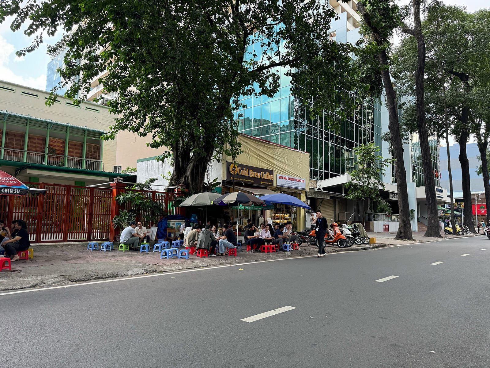 Trên đây là những vị trí quen thuộc, tuy nhiên văn hóa quán cóc truyền thống có thể xuất hiện bất cứ nơi nào, hoặc đôi khi biến mất nữa. Bạn chỉ cần bước ra đường, chịu khó quan sát một chút, chắc chắn xung quanh luôn có chỗ ngồi vừa ý. Chẳng hạn như đoạn Mạc Đĩnh Chi quen thuộc này hoặc dọc theo con đường dưới metro mát rượi, cực kỳ yên tĩnh nhờ con tàu luôn lỗi hẹn hàng năm: