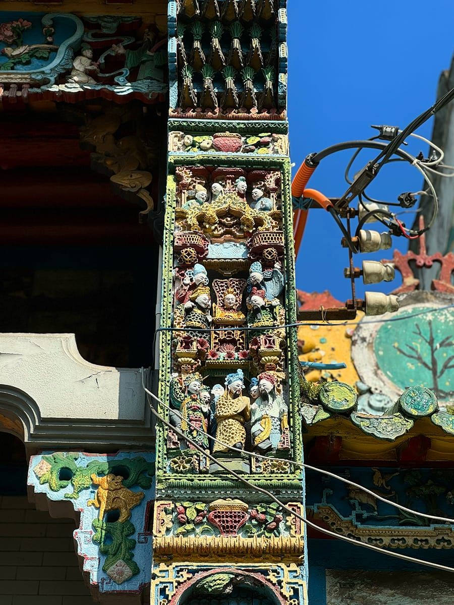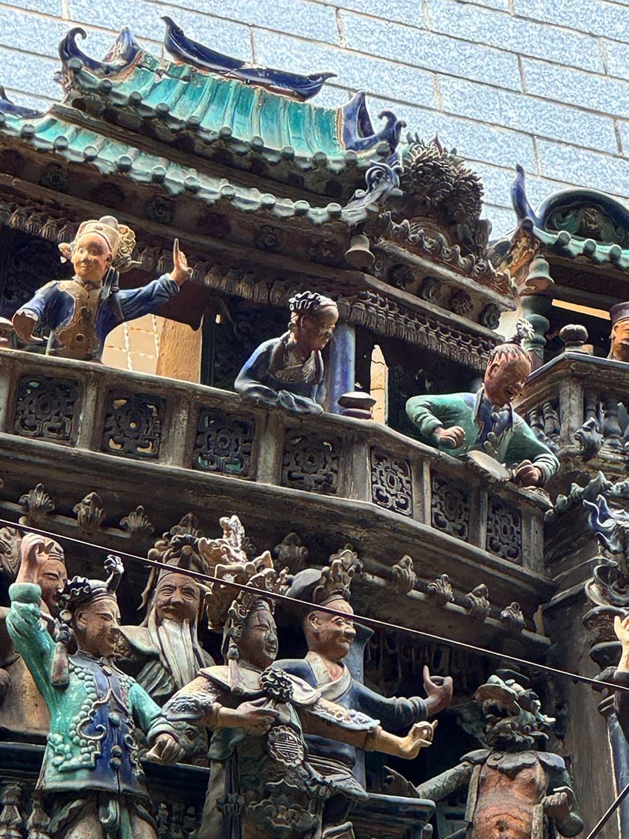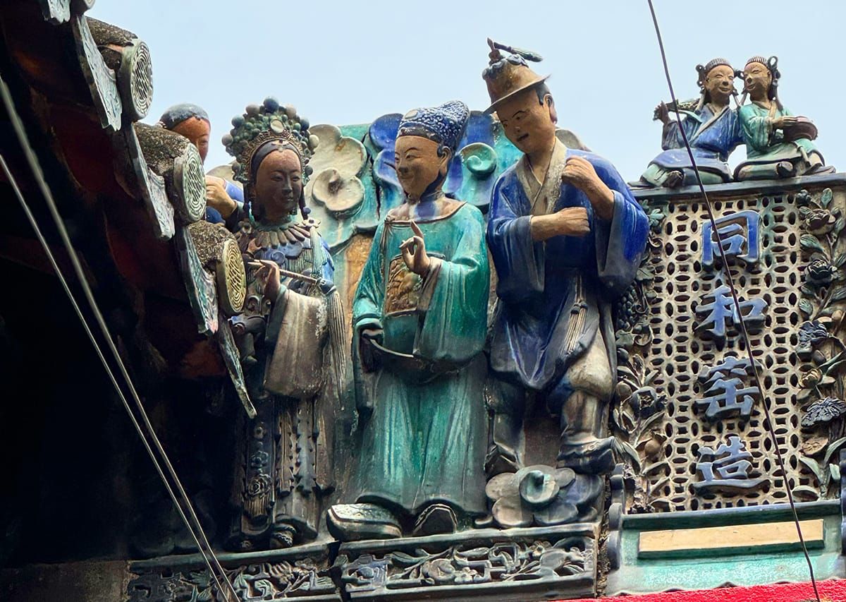 Đặc biệt, ở hội quán Quảng Triệu (156 đường Võ Văn Kiệt) và Tuệ Thành (710 Nguyễn Trãi), dày đặc các tiếu tượng được trưng bày với khoảng cách khá gần. Bạn có thể nhìn thấy từng chi tiết nhỏ trên quần áo nhân vật, cách trang trí áo mão, tóc tai... vô cùng ấn tượng khiến người xem choáng ngợp.