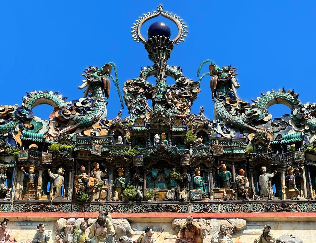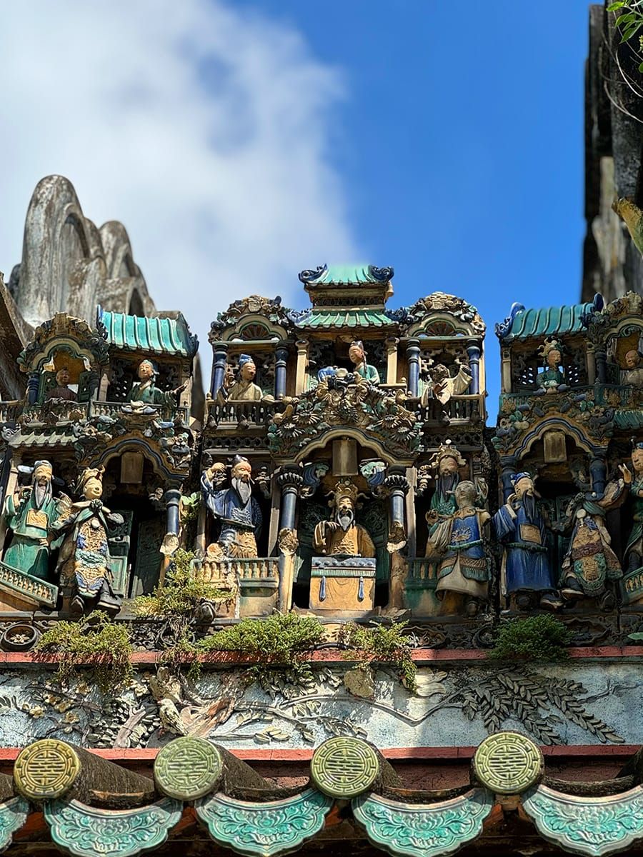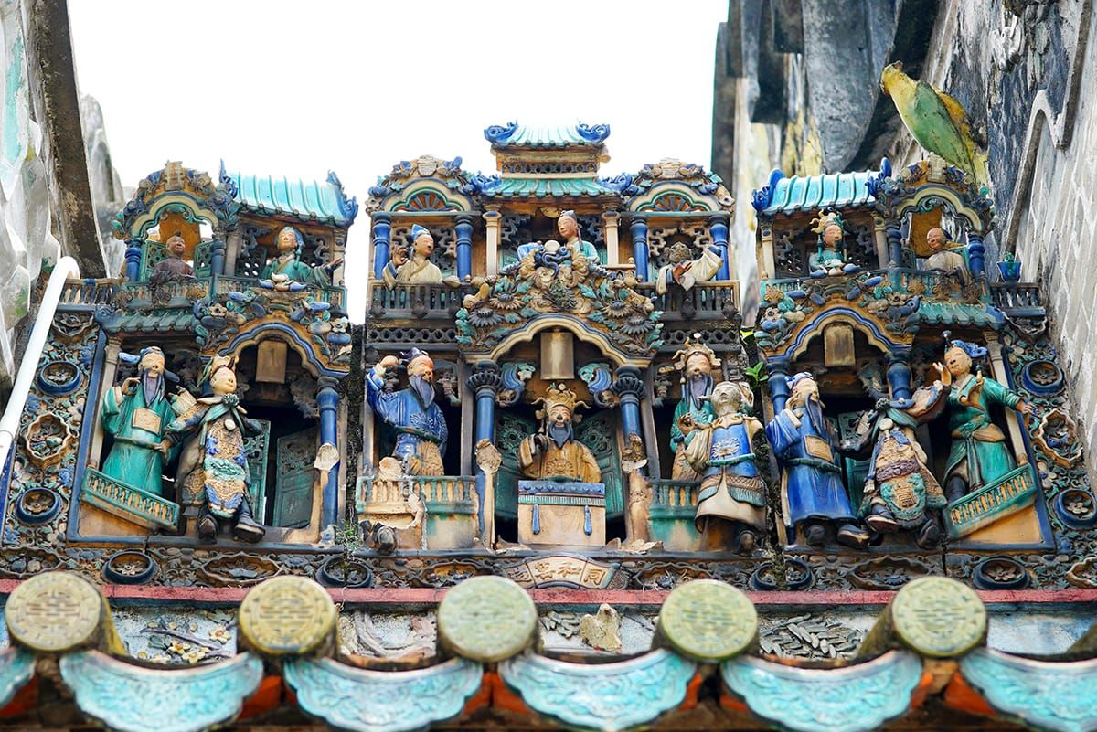 Sẽ thật thiếu sót nếu bạn ghé thăm hội quán nào đó mà bỏ qua các câu chuyện sống động đang nhìn xuống từ trên cao này. Những bức tranh 3D tuyệt mỹ có cái tên đẹp như chính nó: Thạch Loan Hoa Tích.