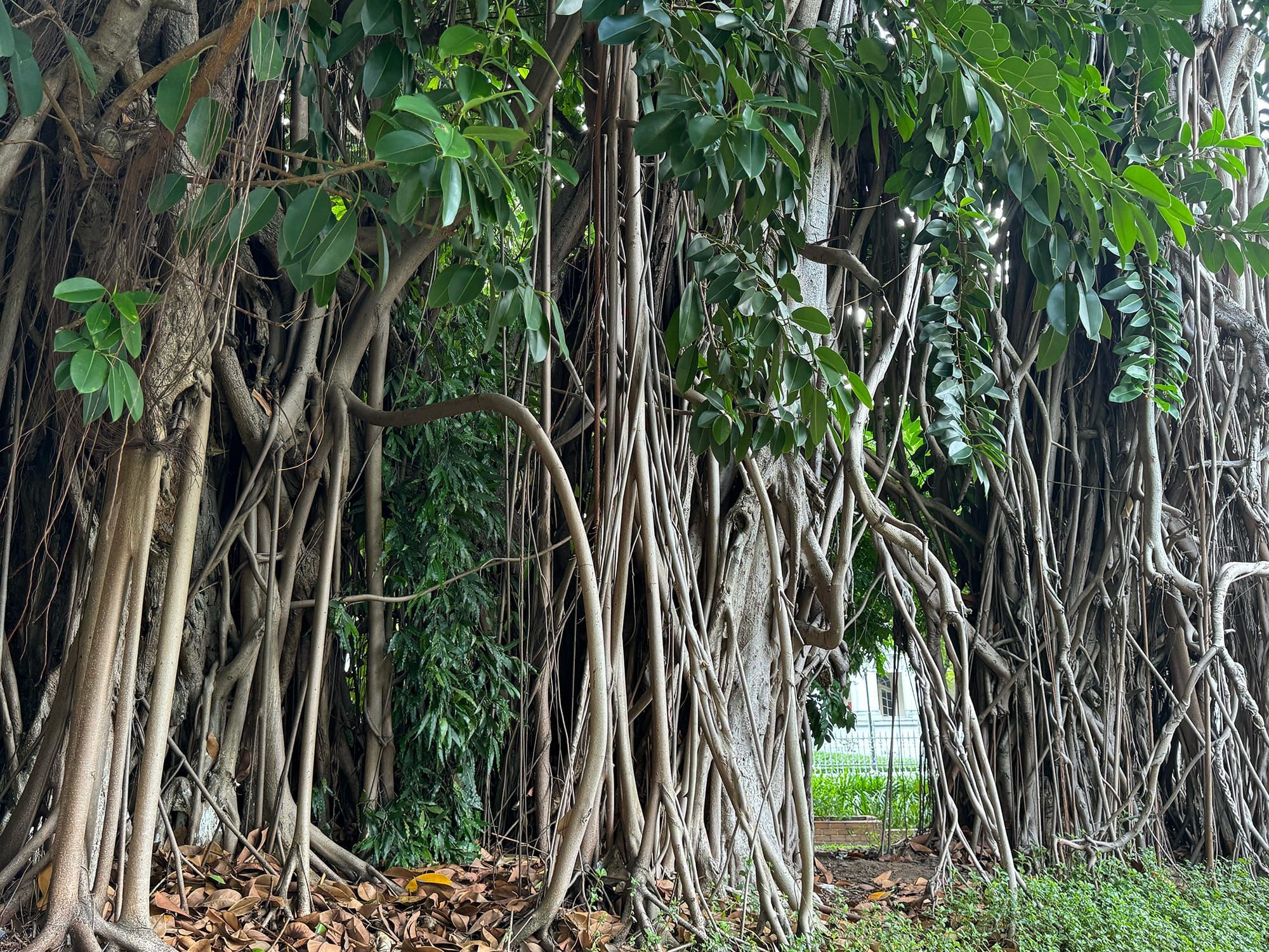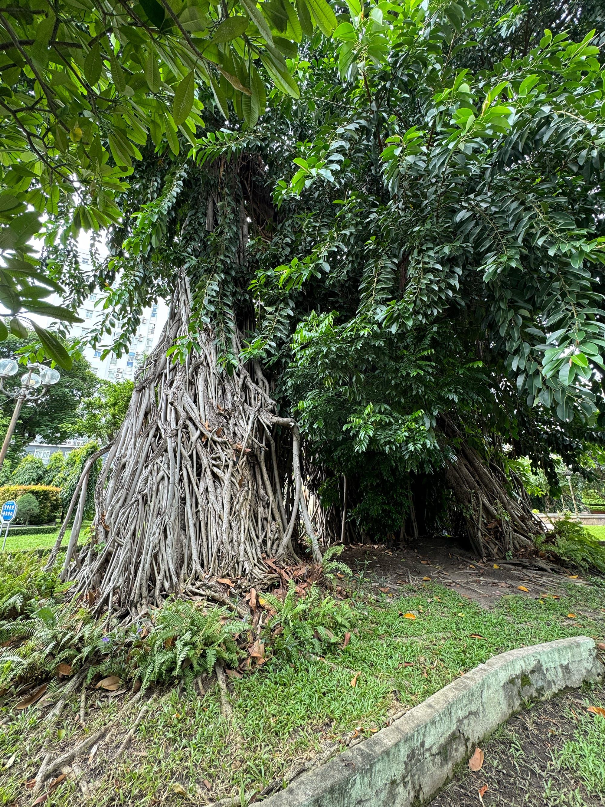 Ông cụ đa có tuổi đời ngang ngửa Sài Gòn, gồm 5 thân rũ từ trên cao xuống.