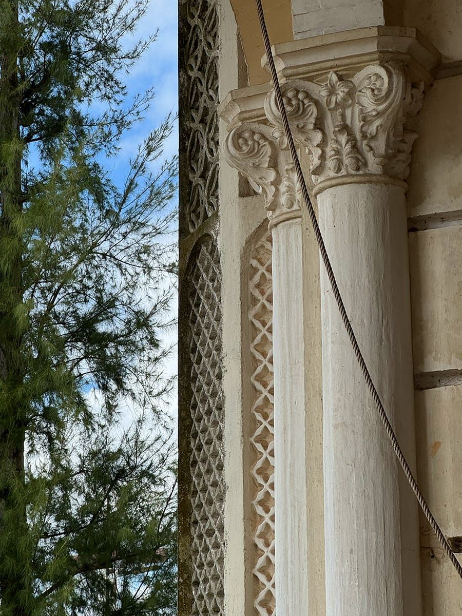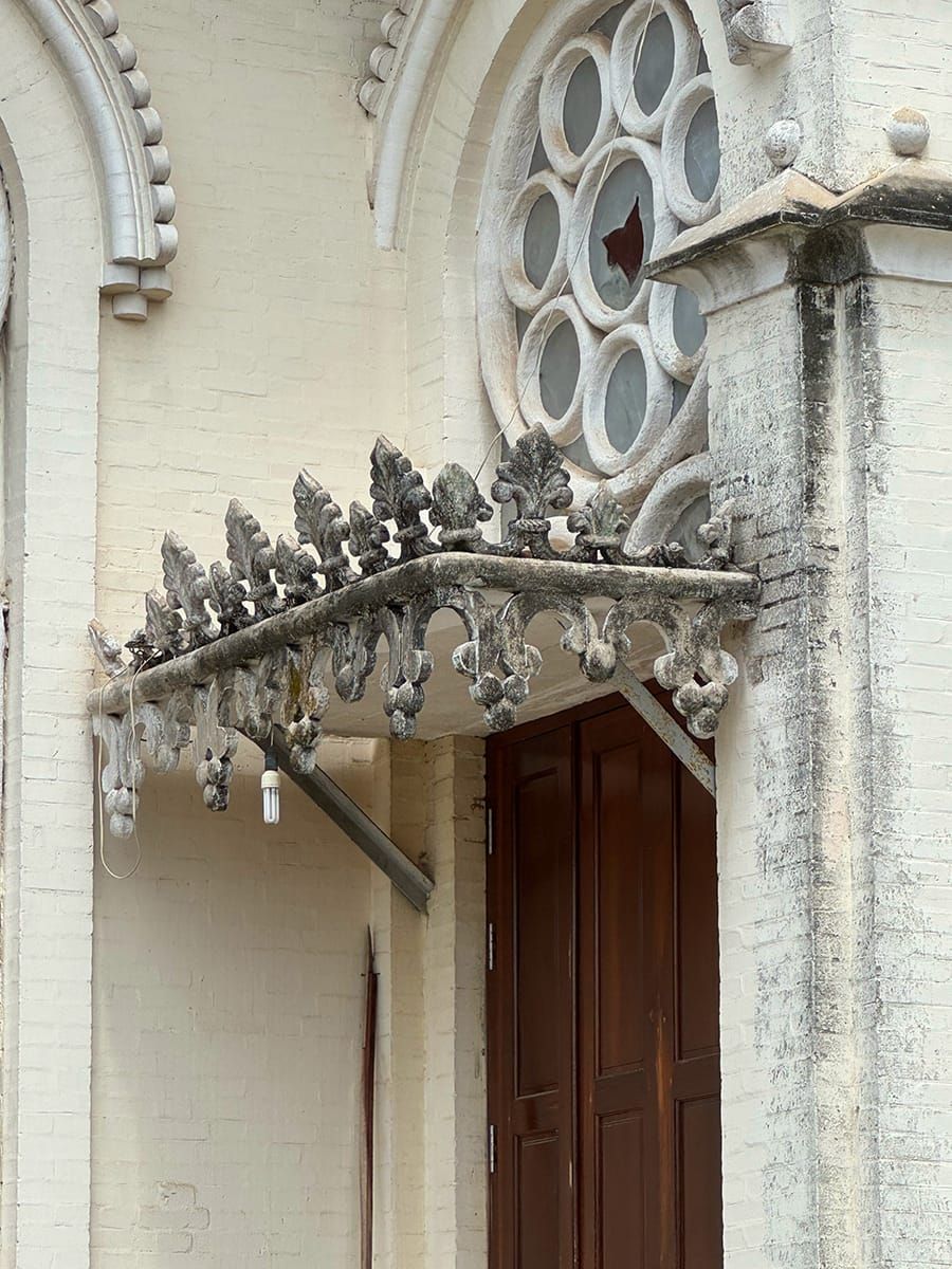 Những Fleuron đặc trưng gothic này ít được sử dụng trong công trình ở Việt Nam. Nhưng bạn có thể thấy chúng được lặp lại khá nhiều trên nhà thờ Cái Bè. Việc phóng hoa lá lên một tỉ lệ ấn tượng giúp các khối lớn trở nên mềm mại, cổ điển hơn.