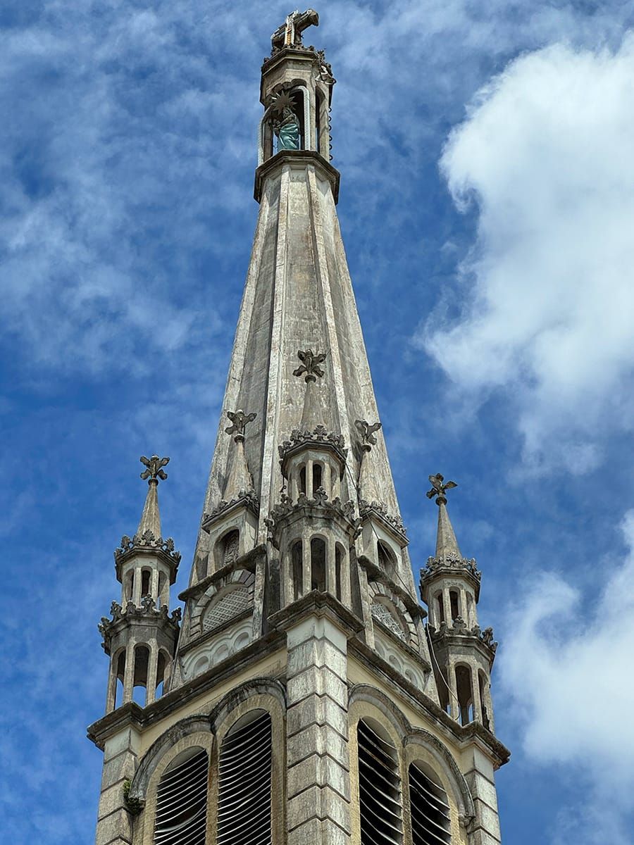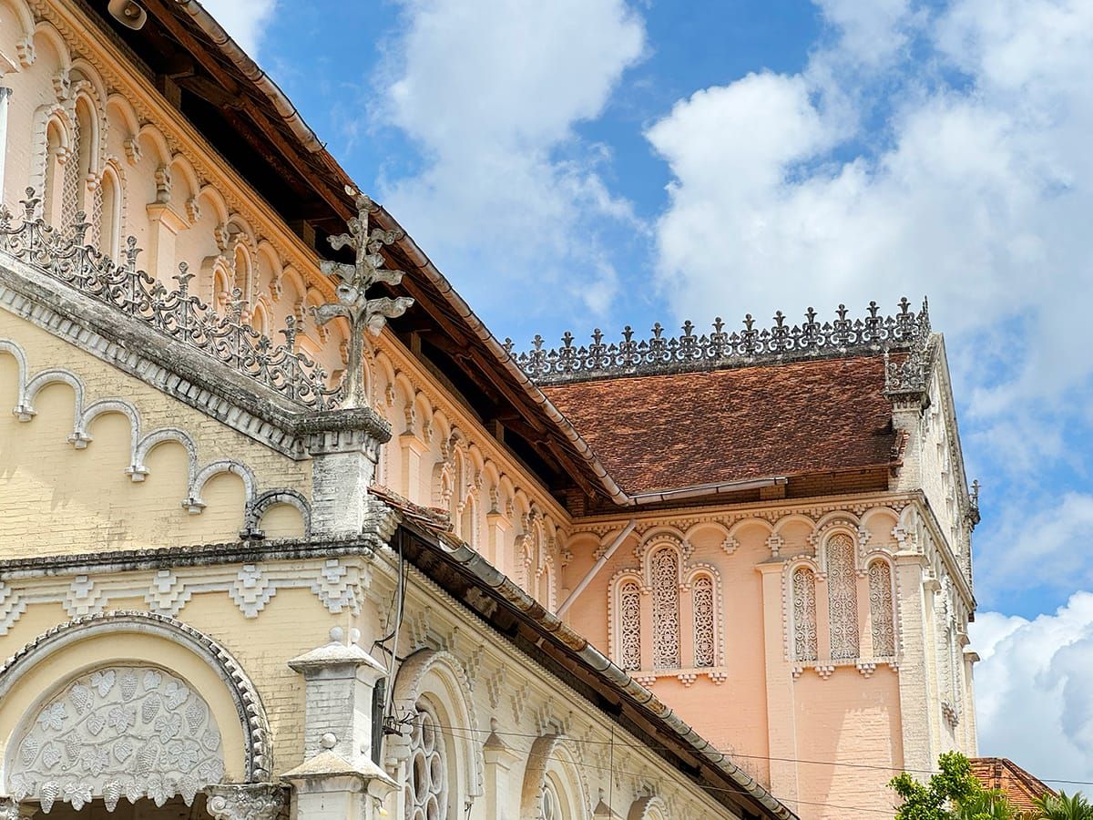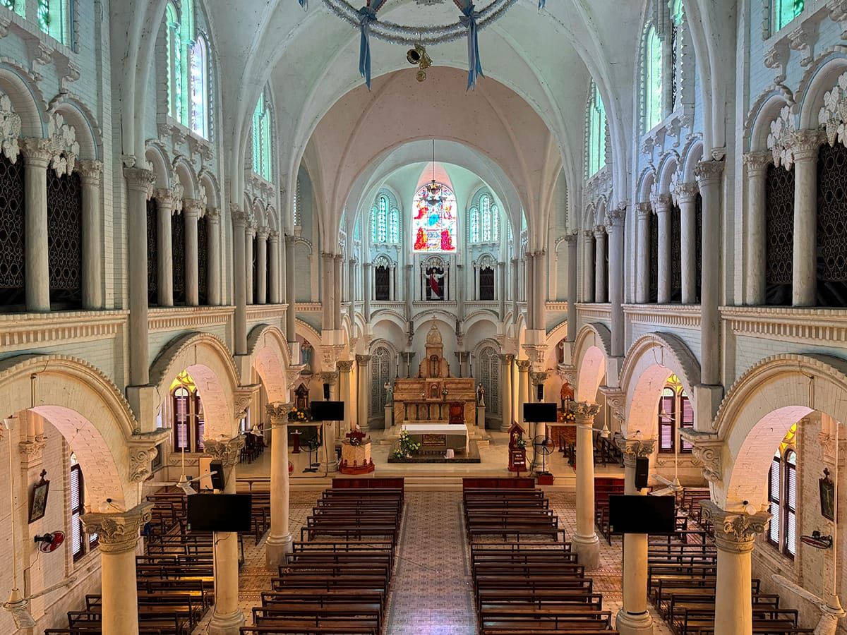 Đây có thể là nhà thờ kỳ lạ nhất ở miền Nam khi bạn bắt gặp nhiều trường phái kiến trúc trên cùng một thiết kế. Những cửa vòm romanesque nằm trên cấu trúc gothic cao vút, kết hợp cùng vô số chi tiết trang trí điệu đà kiểu Baroque được làm nhẹ nhàng, mềm mại đi.