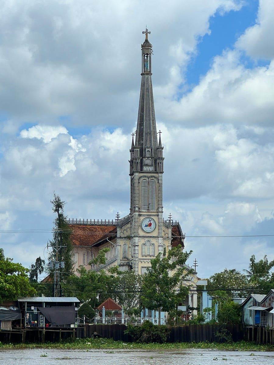 Nếu sống ở đây, mỗi chiều Chủ Nhật, bạn đi bộ bên bờ sông phản chiếu ánh mặt trời dìu dịu, và rồi tiếng chuông ngân lên trong trẻo phía trước, lan rộng trên mặt nước hiền hòa. Những bước chân tiếp theo đưa bạn dừng trước các bậc thềm cũ kỹ, nhìn lên một khung cảnh cổ tích tỉ mỉ khó tin.