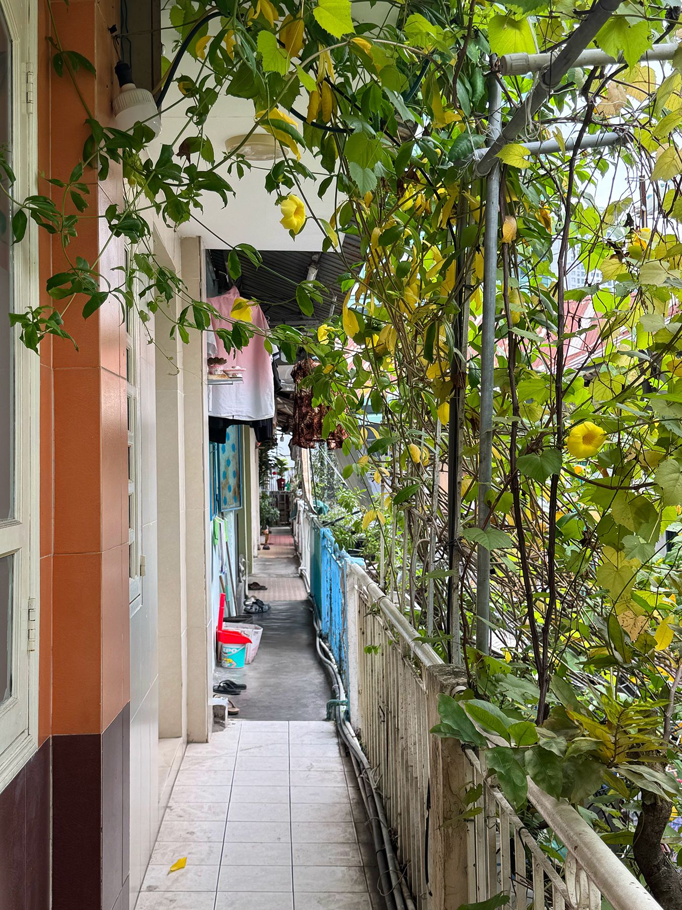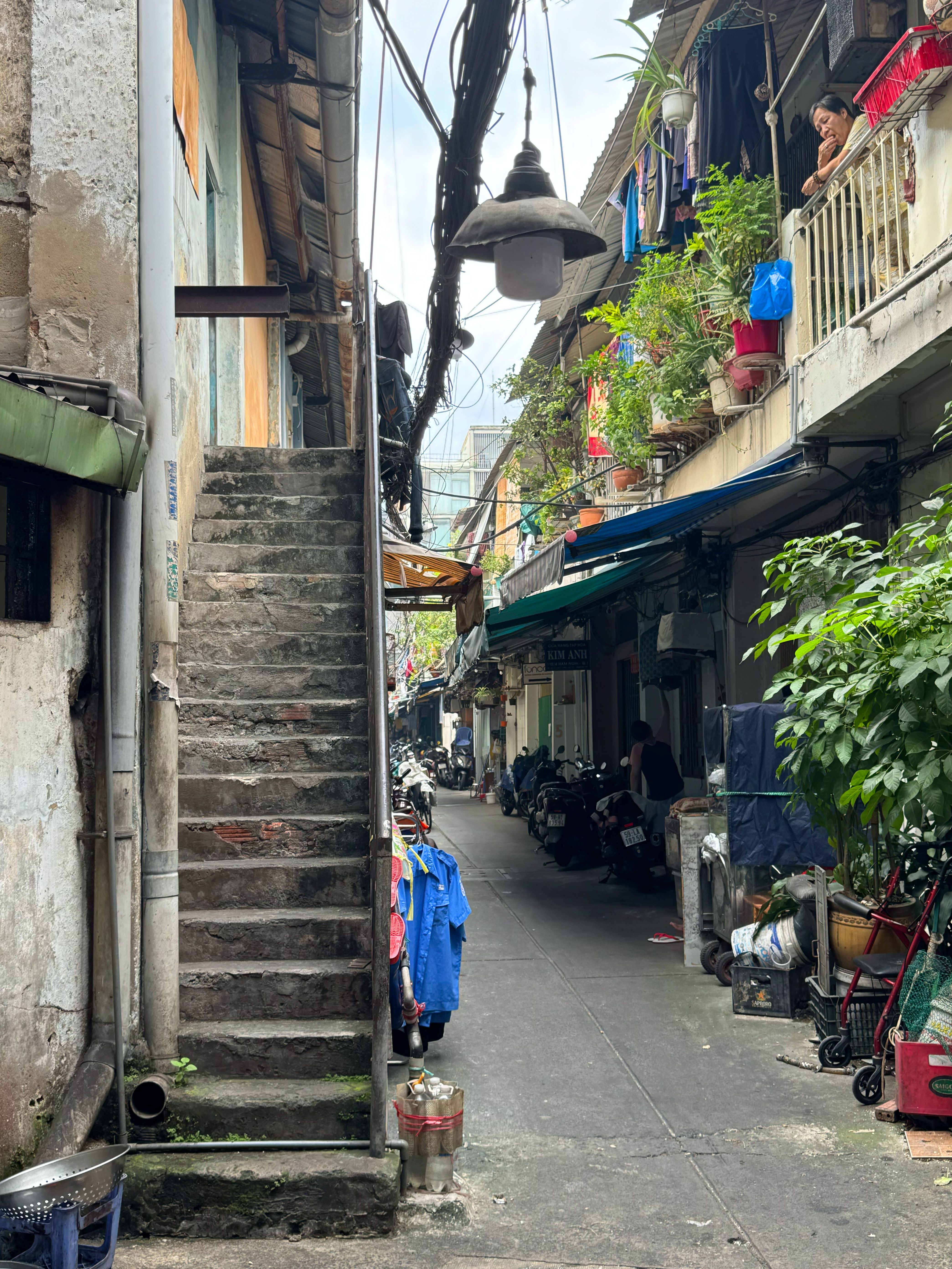 Đó là vẻ đẹp của những điều bình thường. Khi chúng ta đã quá quen với những trung tâm thương mại kính thép sáng choang, khu dân cư này nhắc lại một rung động cũ xưa, kiểu Sài Gòn mà bạn thường nghe kể nhưng ít khi chạm vào được. Thời gian trôi qua nơi này, nó chỉ để lại dấu ấn sống động trên từng chi tiết: giàn hoa, bậc thang mòn, tay vịn cũ... và trong cả ký ức của những người dân, nếu bạn chịu khó ngồi xuống và lắng nghe họ kể lại.