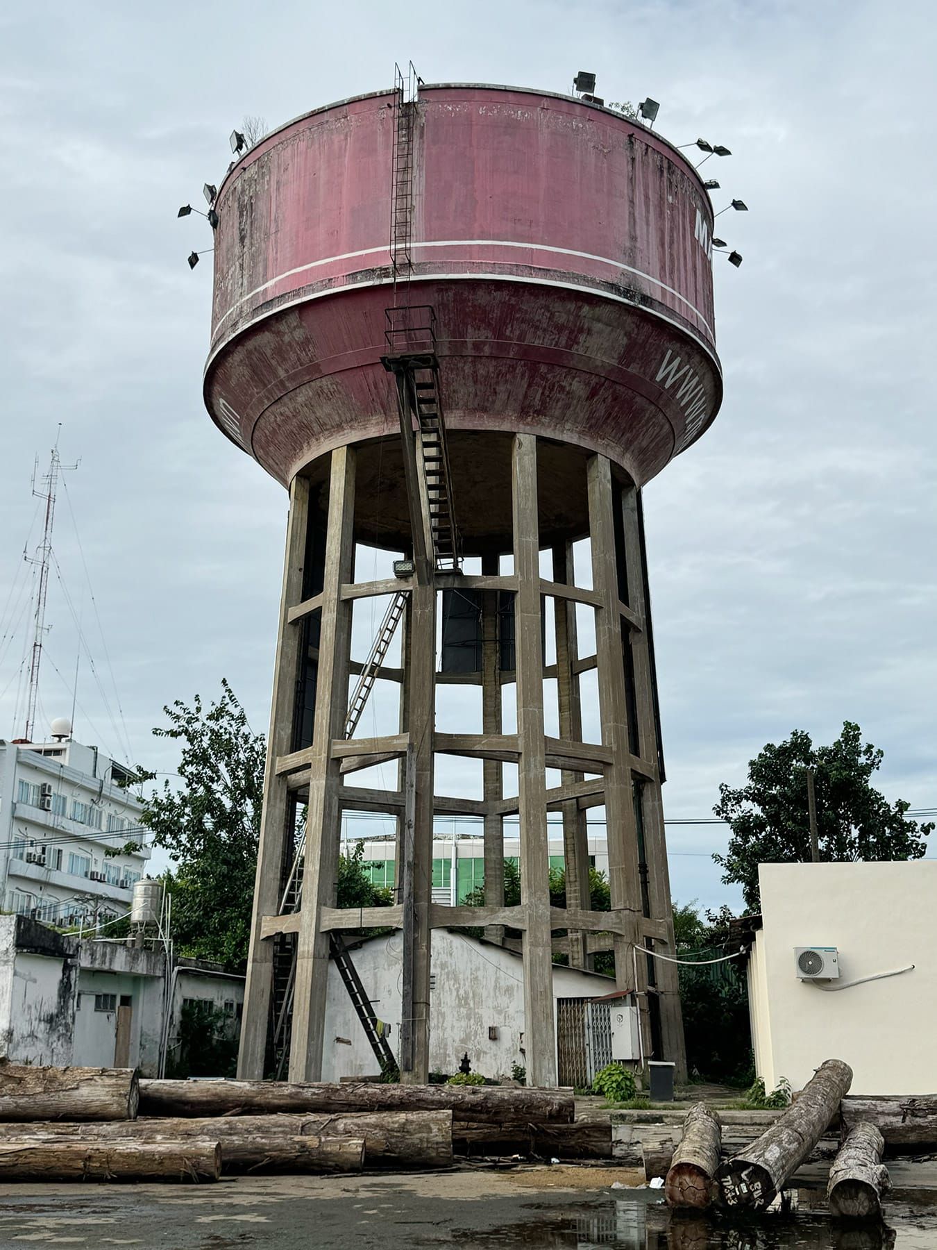 Tòa nhà lớn chính giữa và bồn nước phía sau vẫn còn đây: