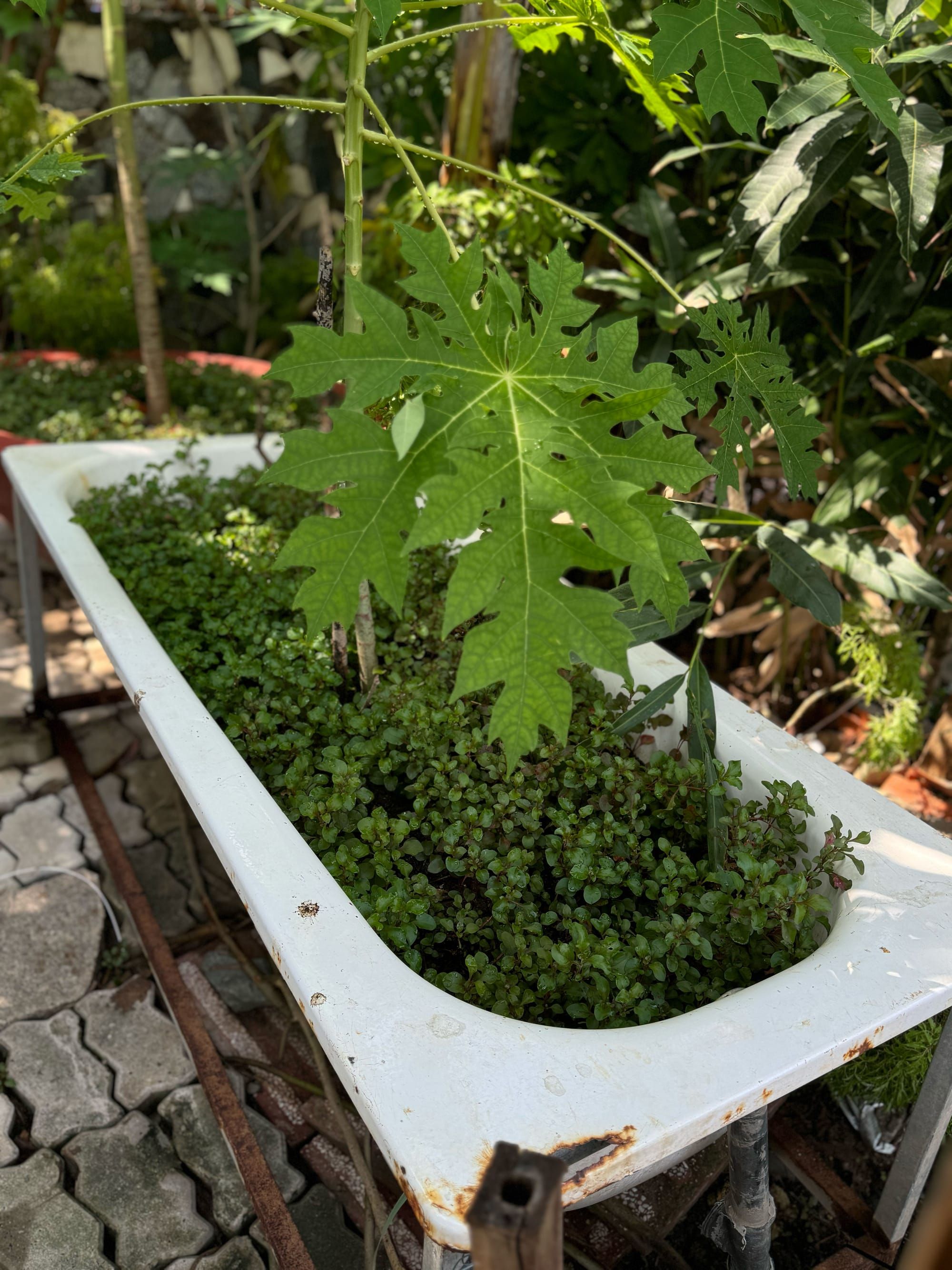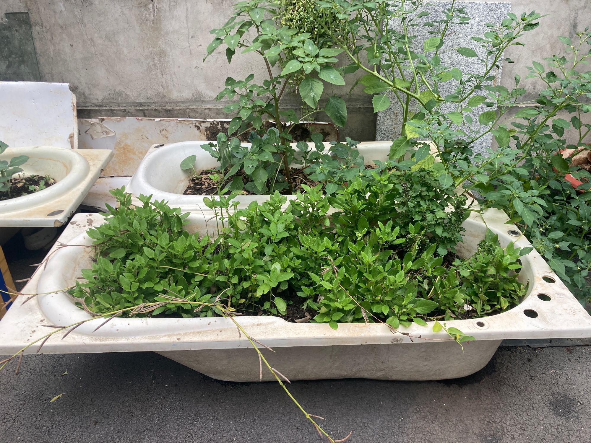Ở phố thị, những luống rau xanh mát cũng được mọi người tạo hình theo cách thức mới mẻ hơn, trong đó chiếc bồn tắm cực kỳ quan trọng.
