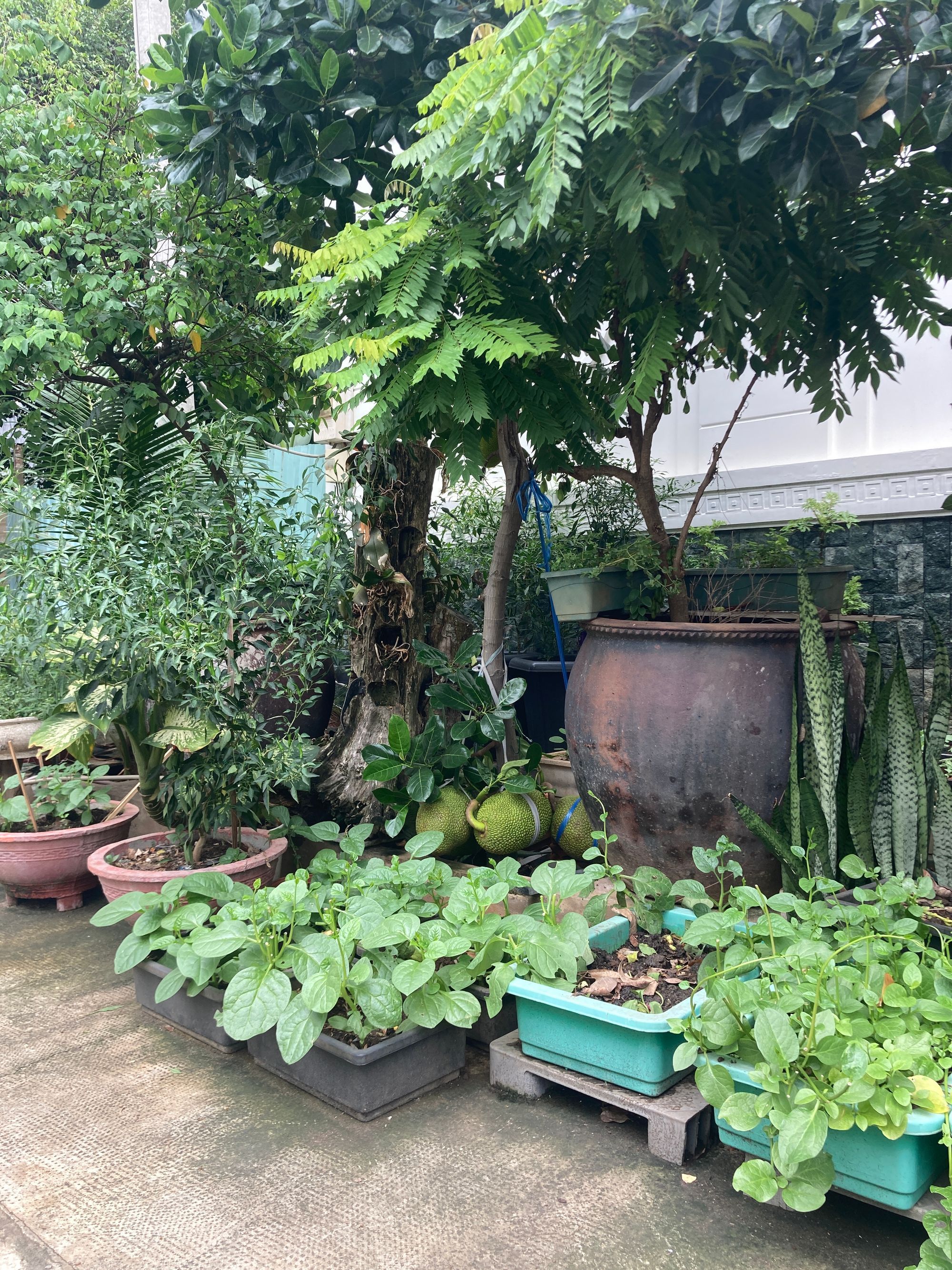 Thậm chí là những cây ăn quả, như gốc cây mít của nhà này chẳng hạn :) Dù vậy, nó cũng mọc kì lạ, thấp lè tè sát đất.