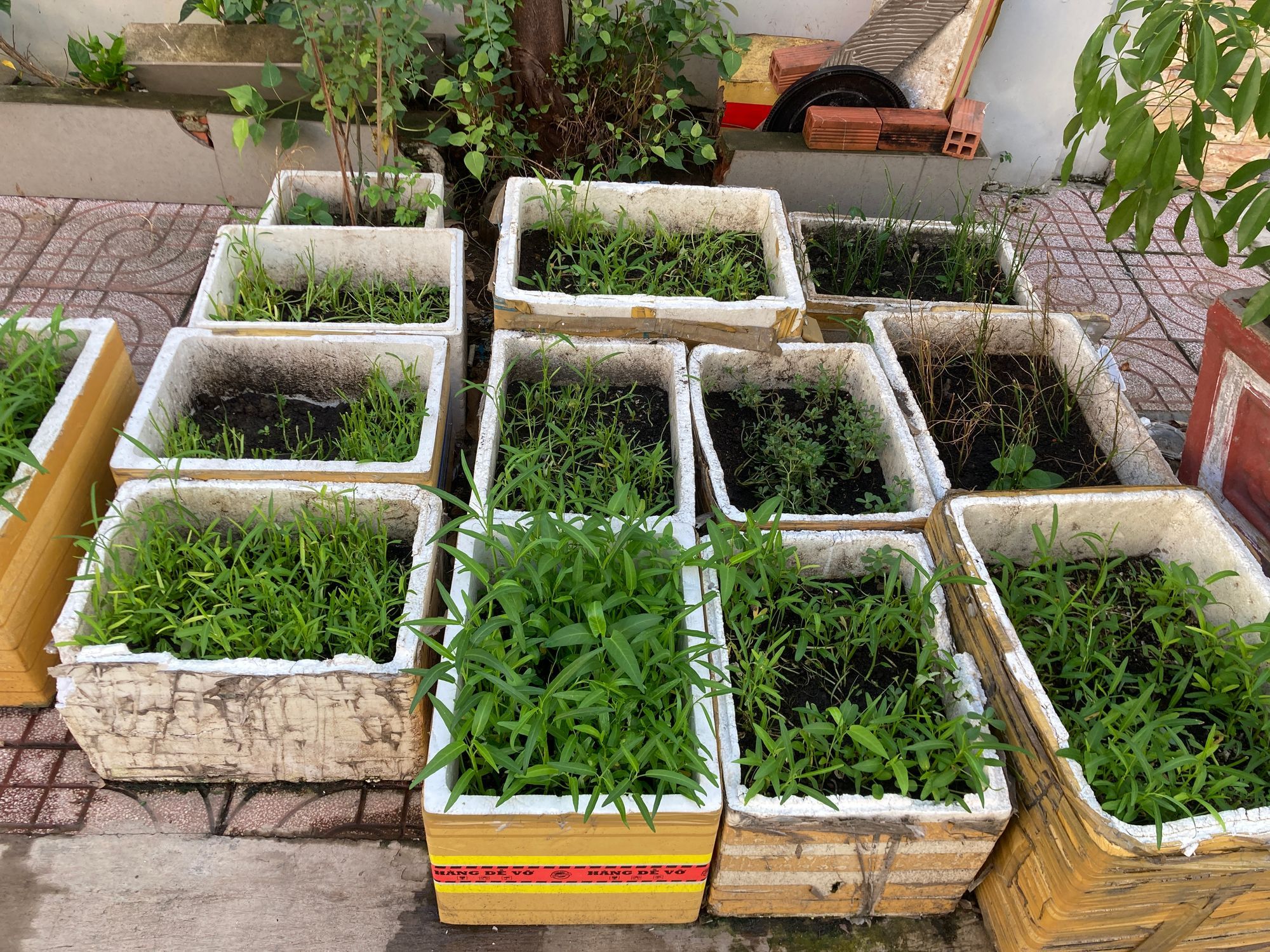 Khi nói về một vườn rau, hẳn mọi người nghĩ ngay đến mảnh đất rộng rãi lý tưởng. Nhưng hãy bớt mơ mộng. Đây chỉ là thùng xốp, bồn tắm, vỏ xe... thôi.