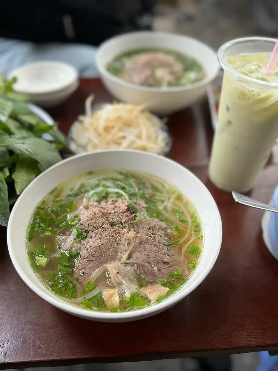 Mở đầu... ngon lành nhất của hành trình bằng những quán ăn đỉnh cao của hương vị đỉnh cao của "biết đủ là đủ". Lựa chọn đầu tiên, một tô tái vè ở Phở công an số 211 đường Nguyễn Thái Bình (Vị trí). Theo Sloth, đây là quán phở ngon nhất Sài Gòn. Hương vị cân bằng khéo léo giữa vị phở Nam-Bắc, nước dùng đậm đà sâu nhẹ nhàng, chắc chắn làm thoảng thốt các giác quan lười biếng trong một ngày thong dong. Quán không có tên, những thực khách quen thuộc thường gọi "Phở công an" bởi vì các chú công an gần đó hay... ăn ở đây.