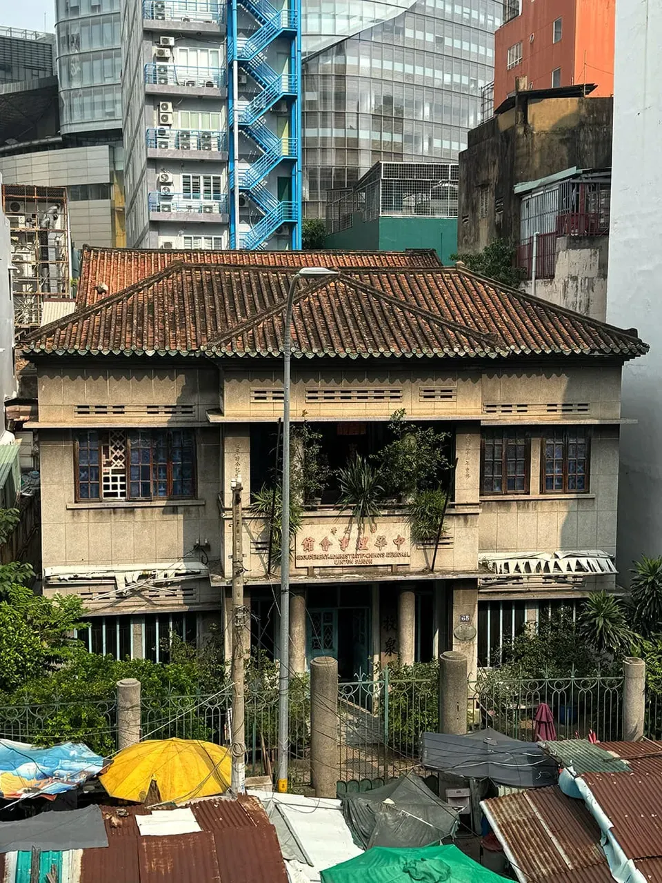 Đối diện Mì Gia truyền là trường Ecole Yat-sen - dãy nhà cũ kỹ với những câu chuyện đã bị lãng quên. Cùng ăn sáng và tìm hiểu về kiến trúc cũ kỹ này ở bài viết này nhé. Bạn có thể lên tham quan trường bằng cầu thang nhỏ phía dưới, góc nhìn từ ban công bao la rộng lớn, lạ lẫm một khung trời Sài Gòn đẹp mắt.