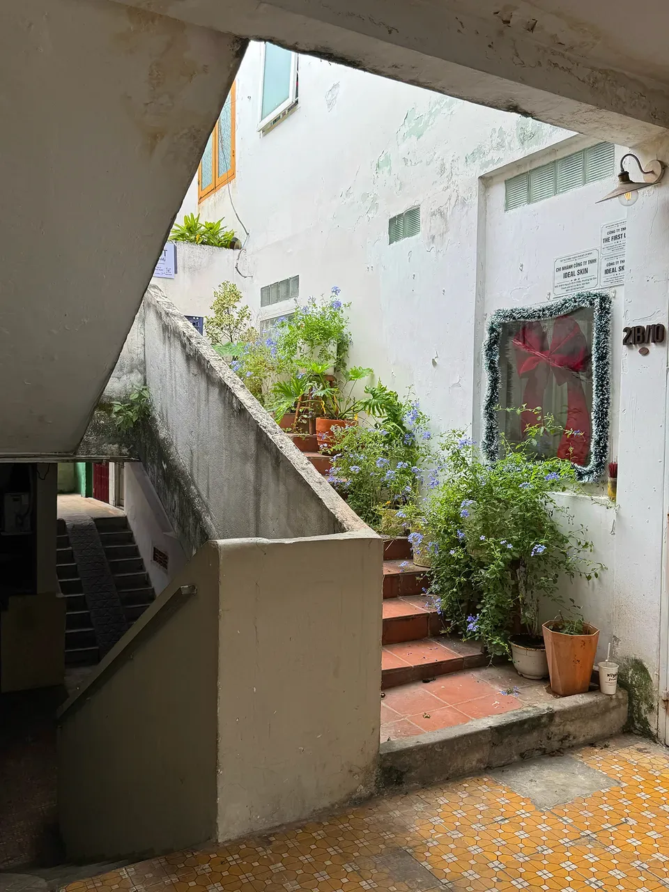 Món quà tạo nên rung động lớn nhất ở đây là cư xá xinh xắn ẩn sâu, nơi làm nên một góc phố dịu dàng trên cao. Trong cư xá này, các cầu thang dù ngắn vẫn đủ dẫn bạn đi quanh co, qua nhiều khúc quanh ngập tràn ánh sáng, đầy hoa và những ô cửa xinh xắn. Cũng giống như khi bạn đi vào những giao lộ rồi rẽ vào các con hẻm thú vị nhưng dời lên cao, mát mẻ hơn, bất ngờ hơn.